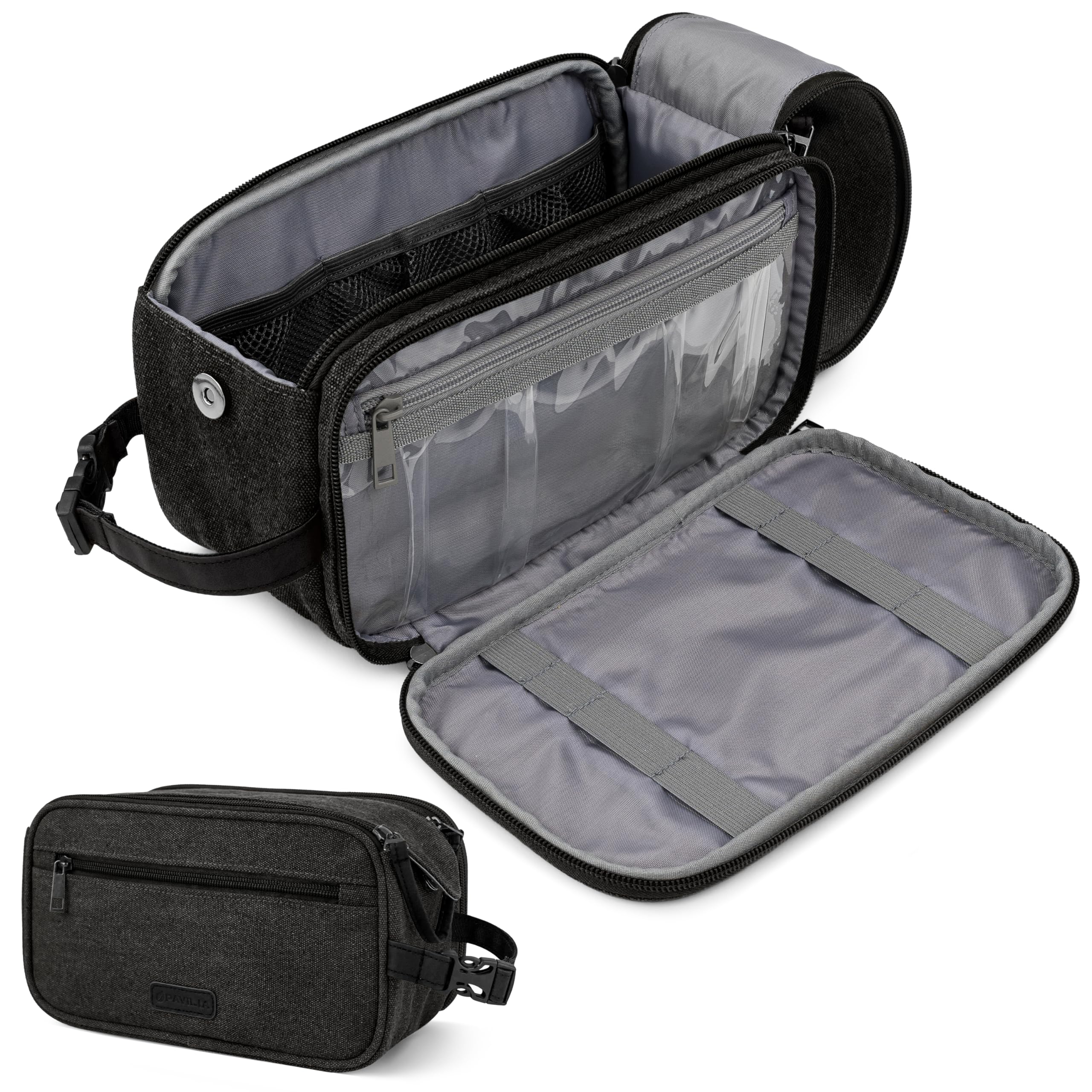PAVILIA Neceser para mujer, kit de viaje de lona, bolsa de higiene resistente al agua, organizador de artículos de tocador, kit de