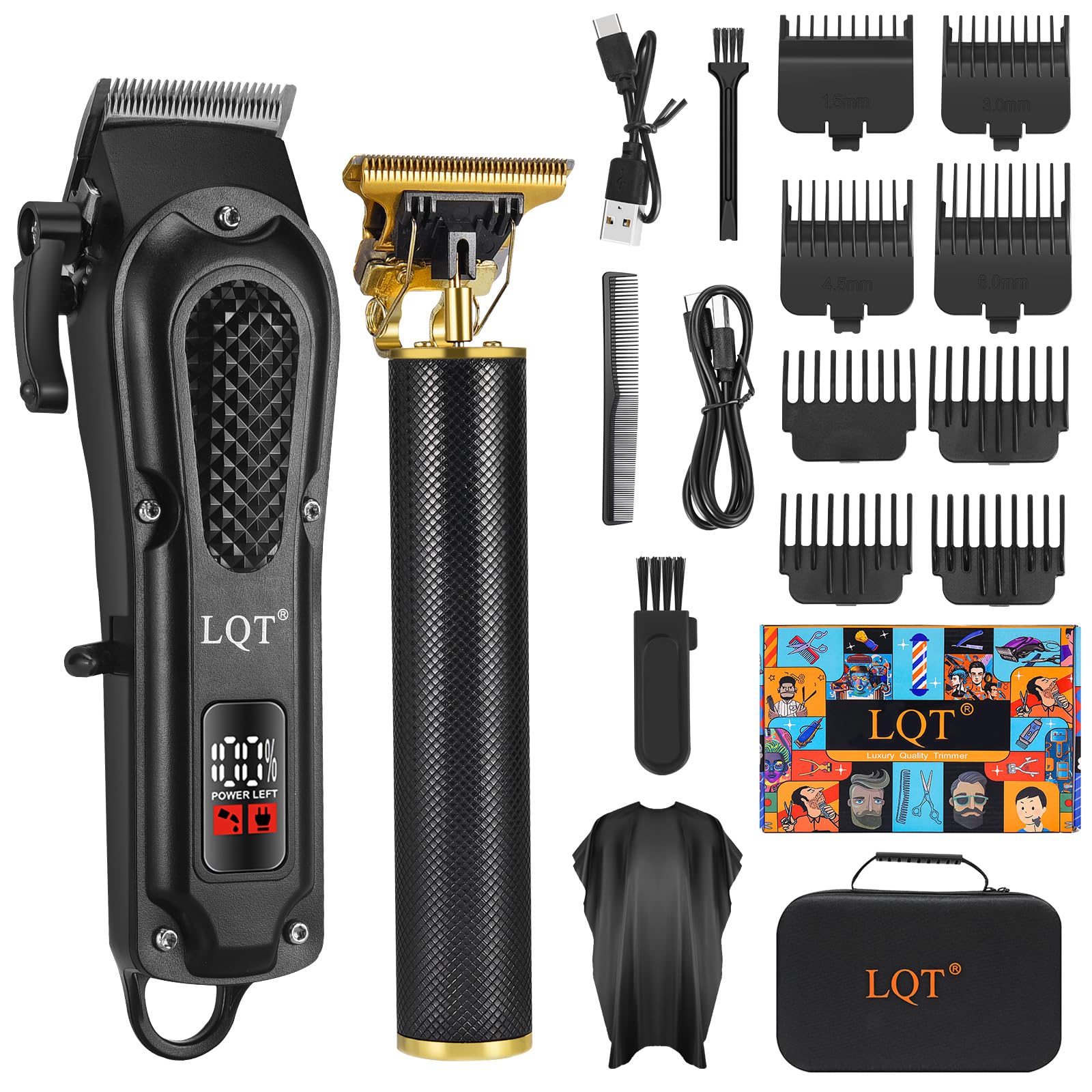 LQT® Kit de cortapelos profesional para hombre, juego de cortapelos inalámbrico y con cable, recortadora de barba recargable con c