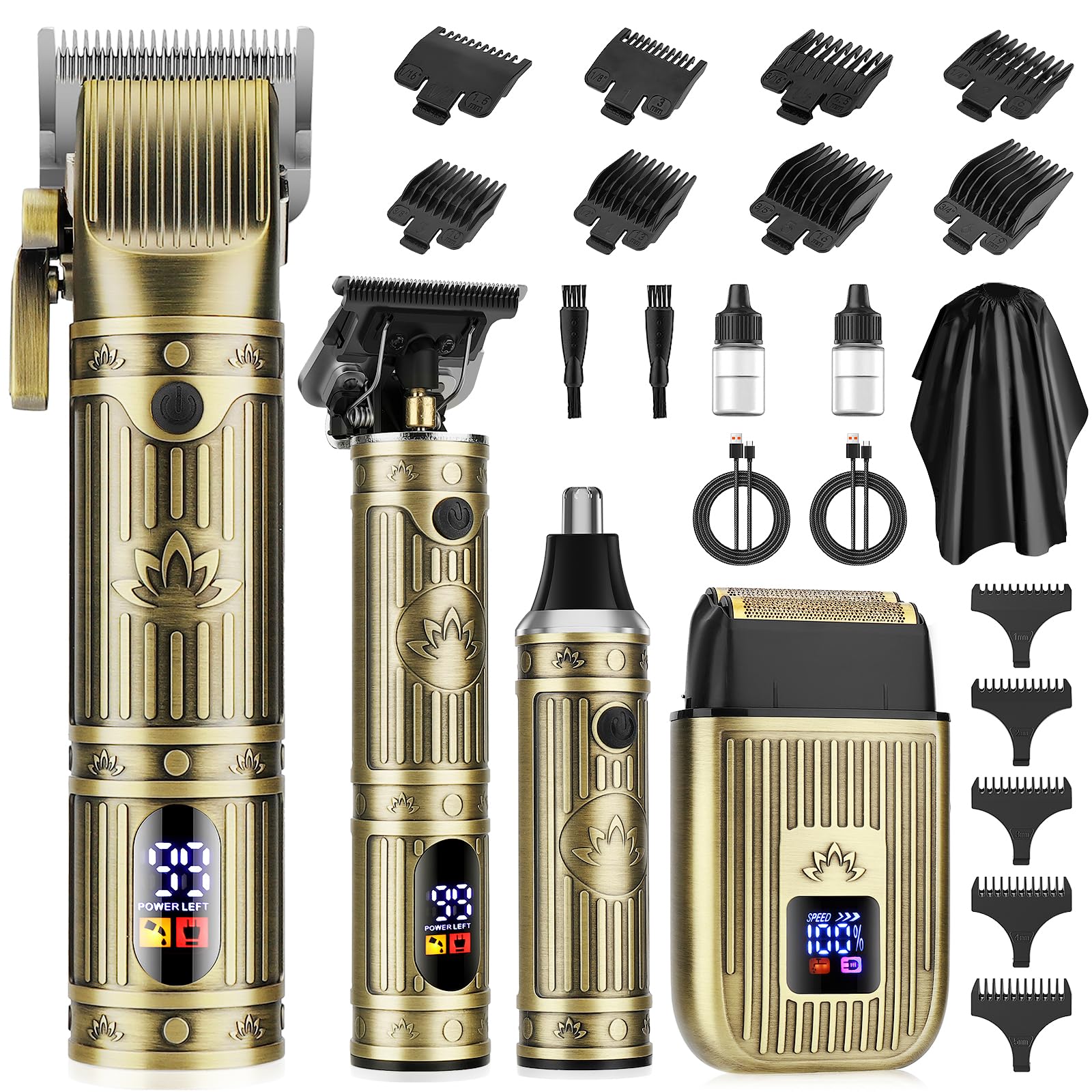 Juego de cortapelos profesional, kit de recortadora de pantalla digital con accesorios, estuche y capa de peluquería, diseño vinta