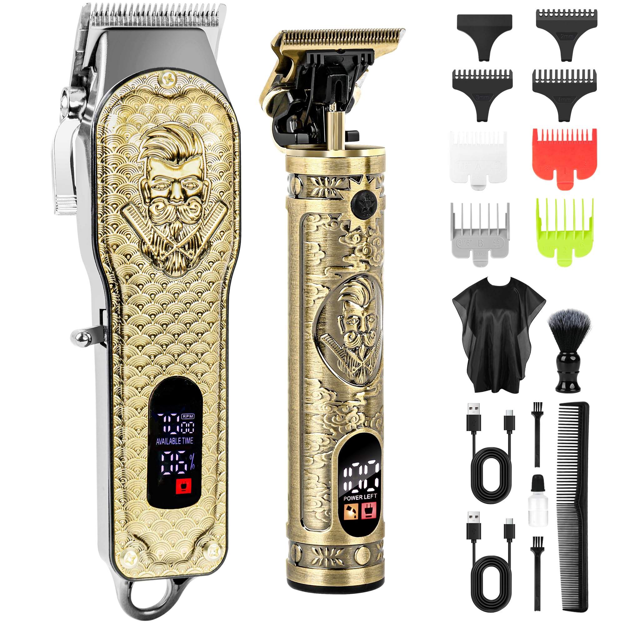 FADEKING® Cortapelos profesionales para hombres, recortadora de barba inalámbrica para hombres, pantalla LCD, juego de cortapelos