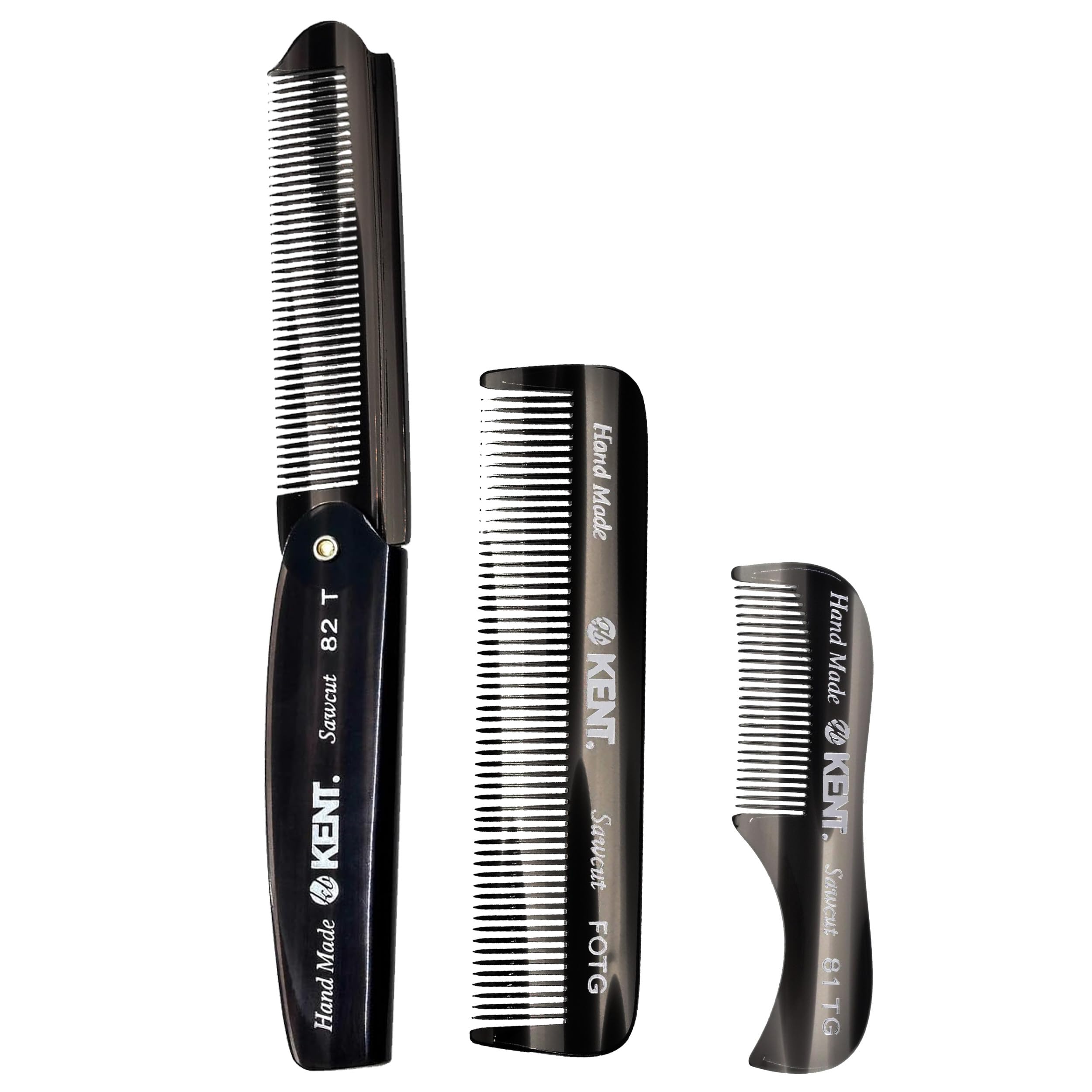 Kent Juego de peine plegable para barba y bigote, mini peines para el aseo, los viajes y el cuidado hecho a mano de los hombres