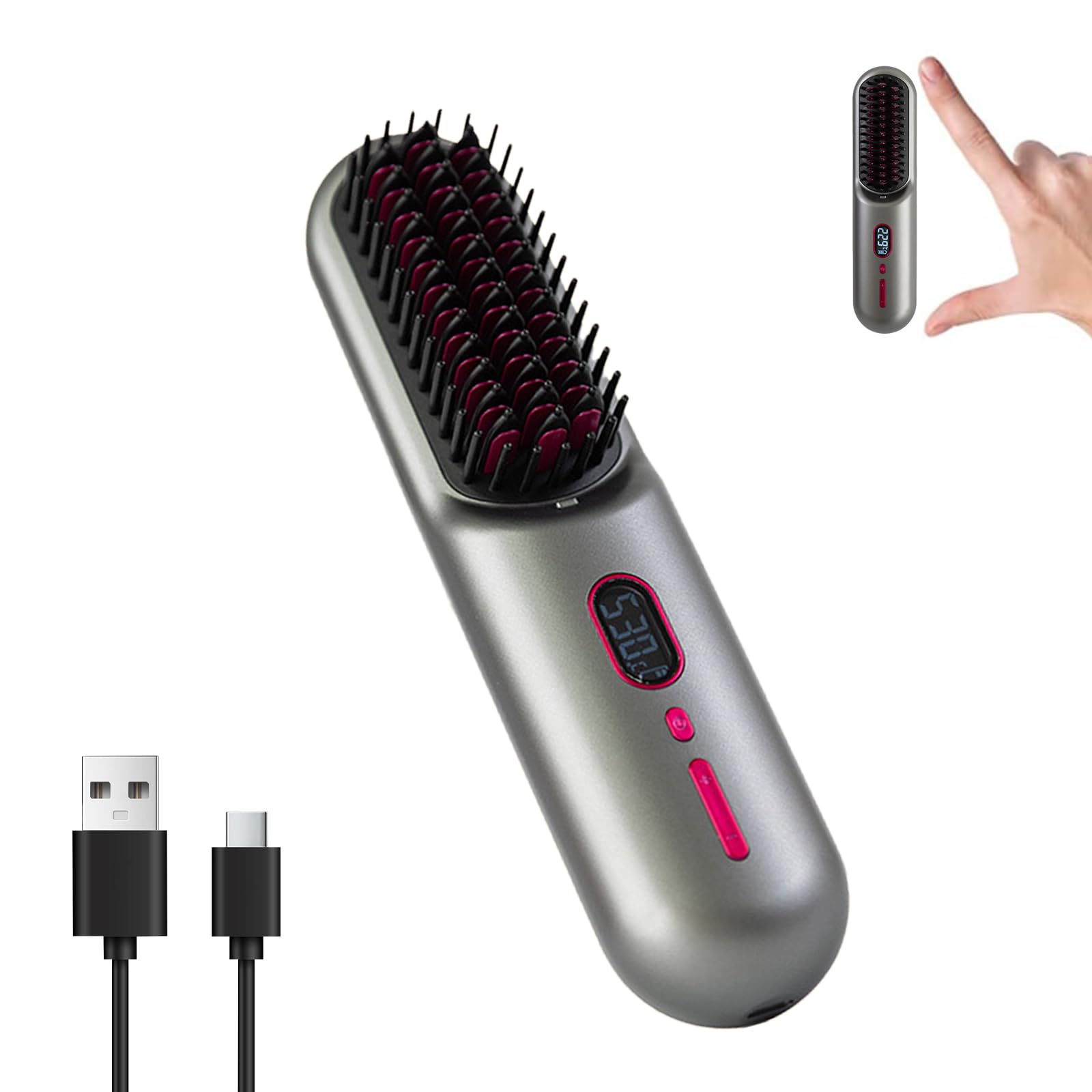 Rizador de pelo inalámbrico con pantalla LCD 2 en 1, mini cepillo portátil para alisar el cabello para viajes, iónico negativo, ca