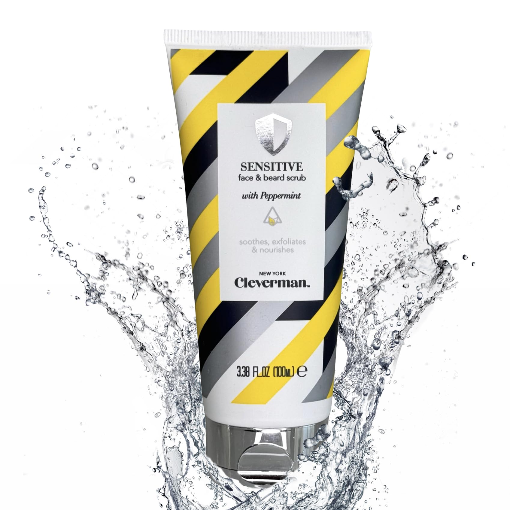 Cleverman Exfoliante facial y barba sensible para hombres, 3.4 fl oz, limpiador facial exfoliante con infusión de menta