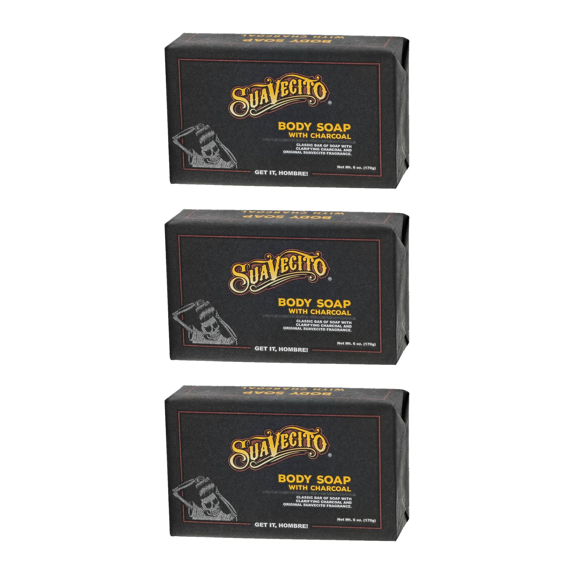 Suavecito Barras de jabón para el cuerpo y las manos, fragancia original masculina hidratante con carbón, 6 onzas, paquete de 3