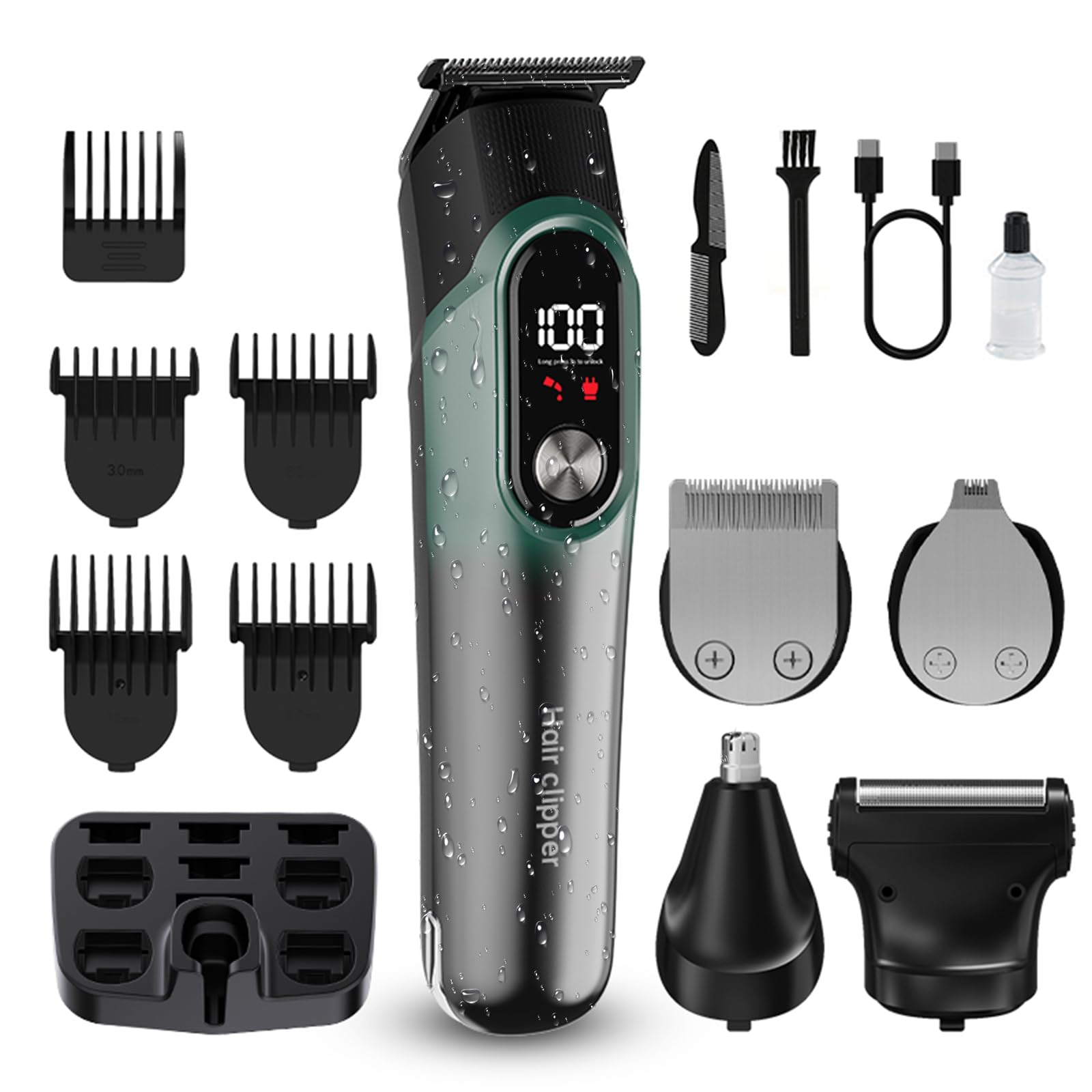 Cortadora de barba para hombres, cortapelos para hombres, kit de afeitado 5 en 1 para cara, bigote, cuerpo, oído, nariz, cortapelo