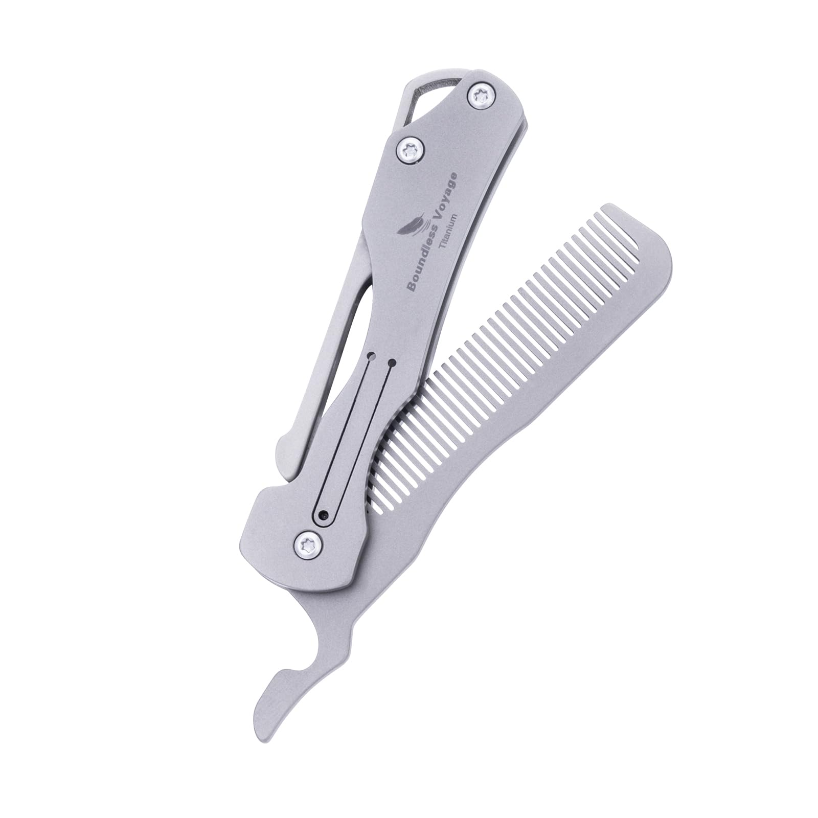 Boundless Voyage Peine de bolsillo plegable de titanio para peluquería de barba, peinado y cuidado del bigote, peine compacto ti90