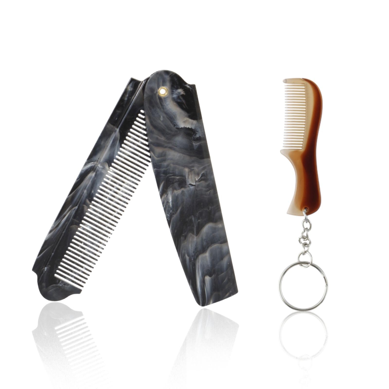 Peine de bolsillo plegable de 2 piezas para hombres, mini peine de dientes finos para barba para el cuidado diario del cabello, ba