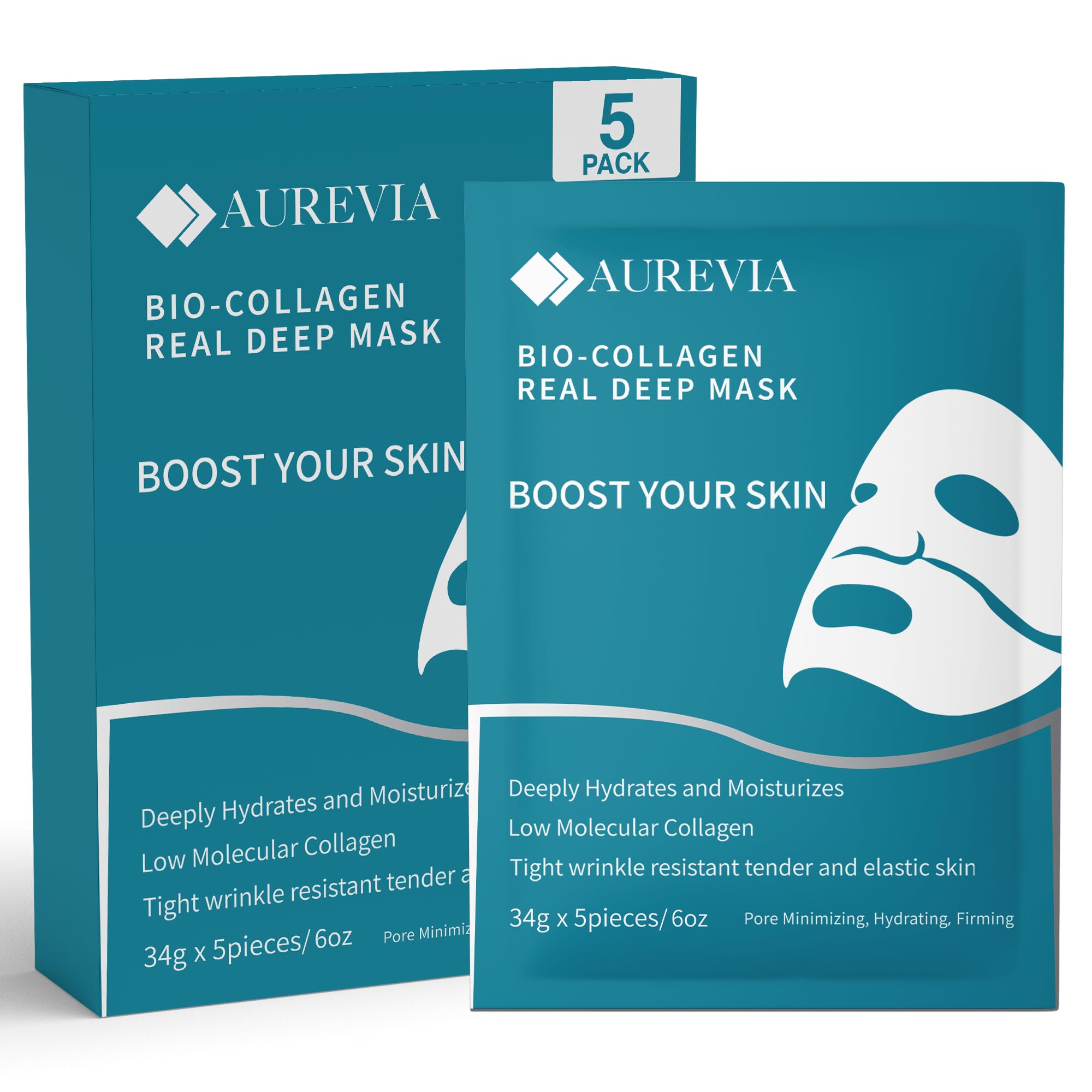 ISTON Paquete de 4 mascarillas faciales de colágeno, máscara de colágeno real antiarrugas | Reafirmante y minimizadora de poros |