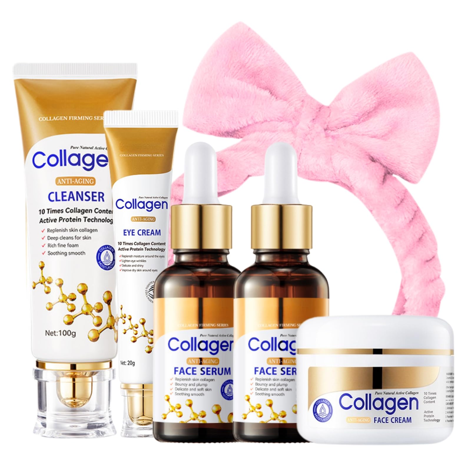 Set de cuidado de la piel de colágeno para mujer, regalo de 6 piezas, juego de cuidado de la piel antienvejecimiento, kit de rutin