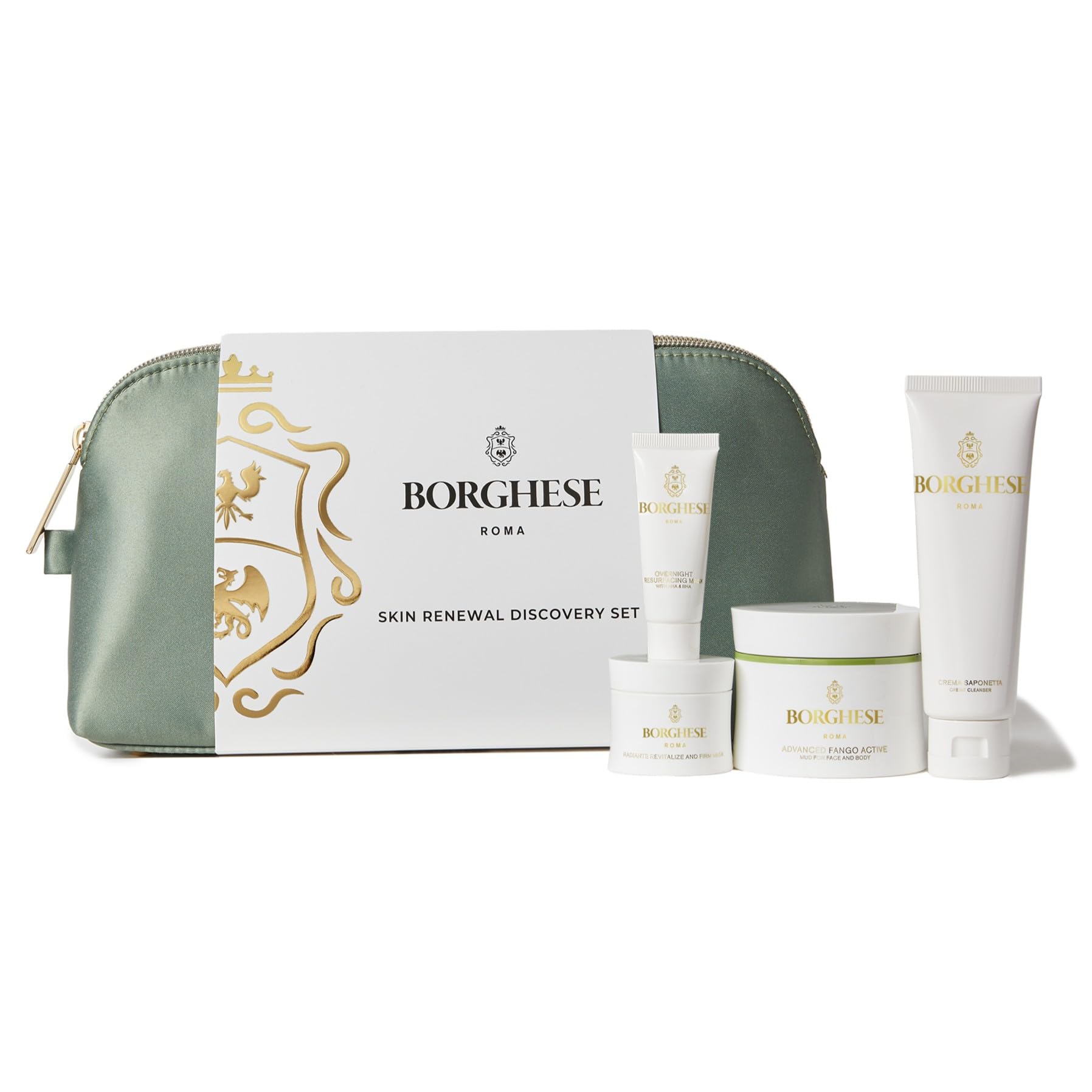 Borghese Skin Renewal Discovery Set – Incluye limpiador en crema, suero reforzador de pre-máscara, máscara de barro para cara y cu