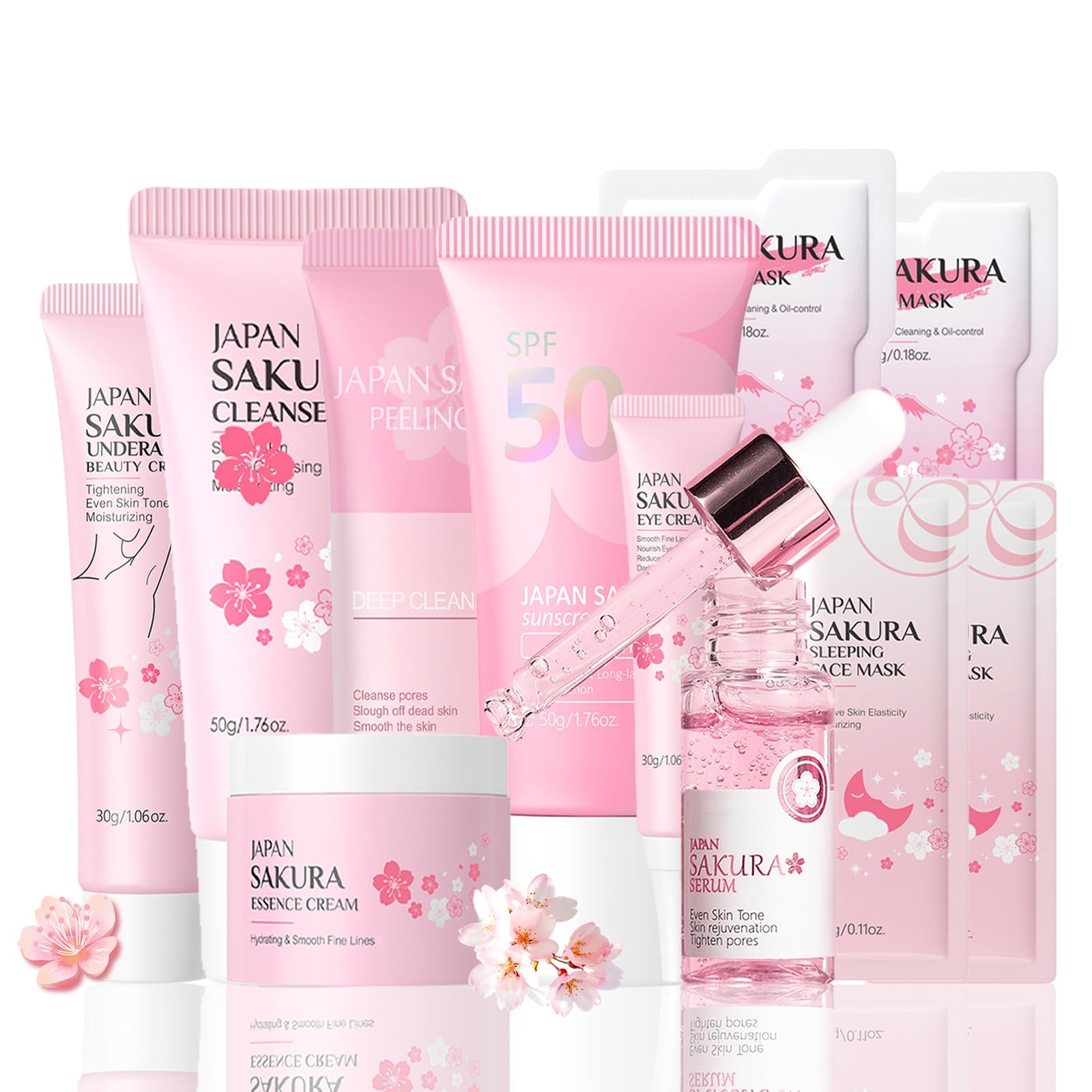 Japan Sakura – Set de cuidado de la piel para mujeres, regalos de 11 piezas, cuidado de la piel para adolescentes de 10 a 12 años,