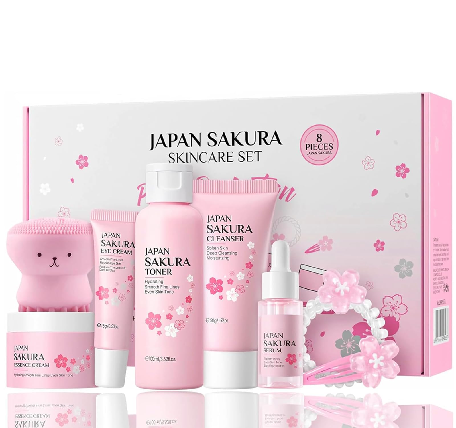 Set de cuidado de la piel para mujeres y niñas, juegos de regalo de belleza de flores de cerezo para hidratación intensa, kit de c