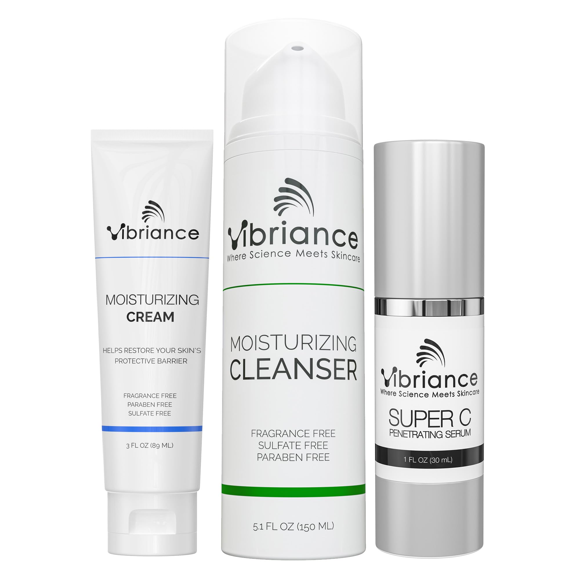 Vibriance Bundle Skincare Set | Suero Super C, limpiador hidratante y crema facial | Kit completo para belleza radiante