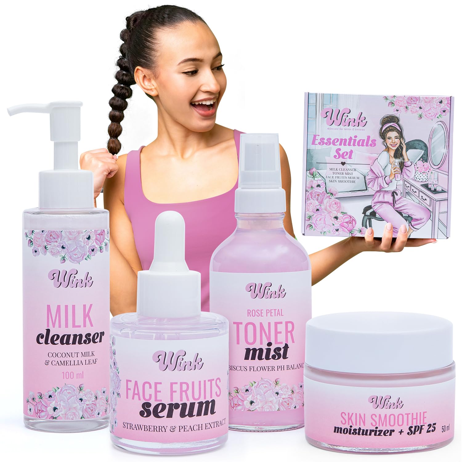 Set de cuidado de la piel para adolescentes (kit de cuidado de la piel facial a base de plantas) limpiador de leche para niñas, tó