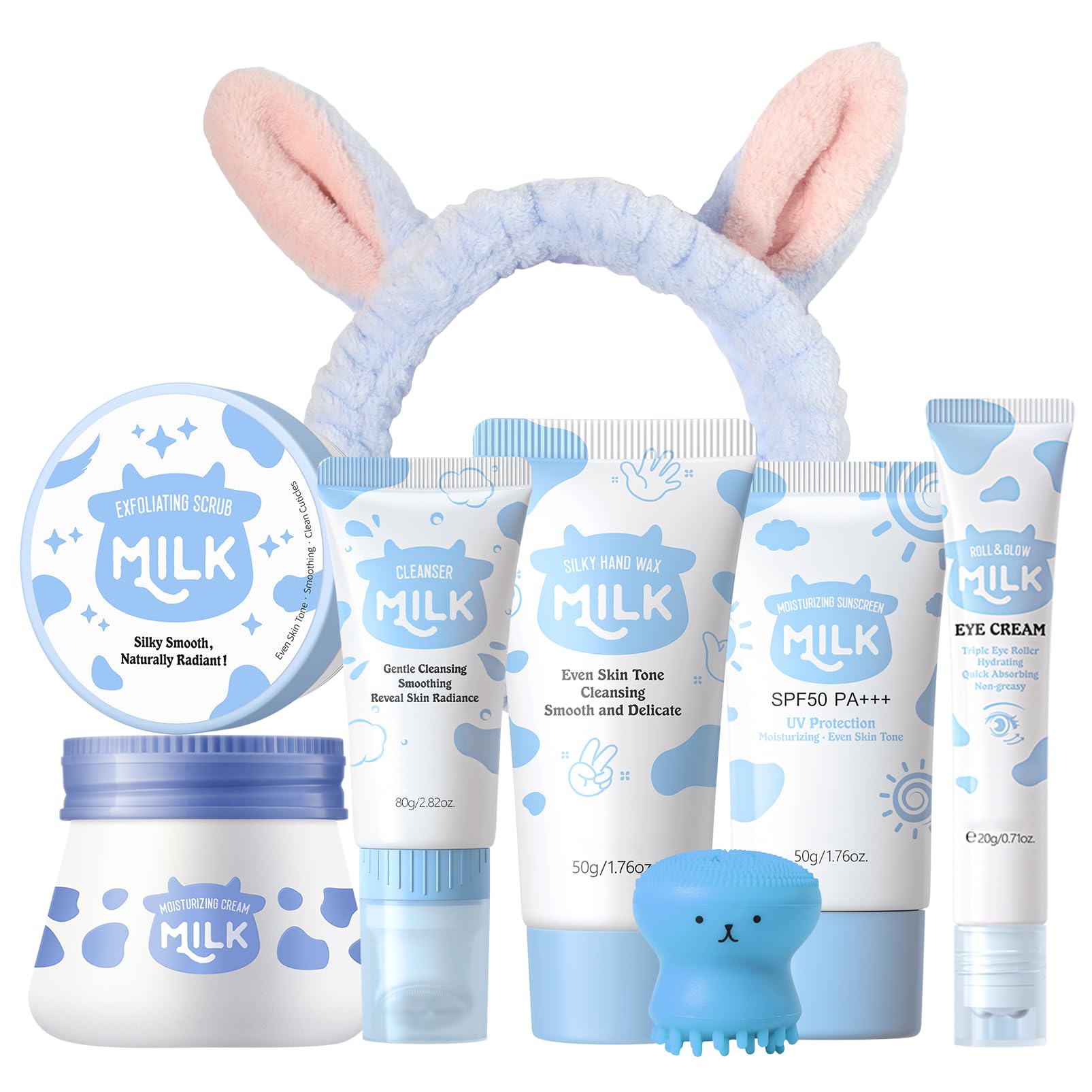 Set de cuidado de la piel de leche para niñas, kit de cuidado de la piel para adolescentes, kit de rutina para el cuidado de la pi
