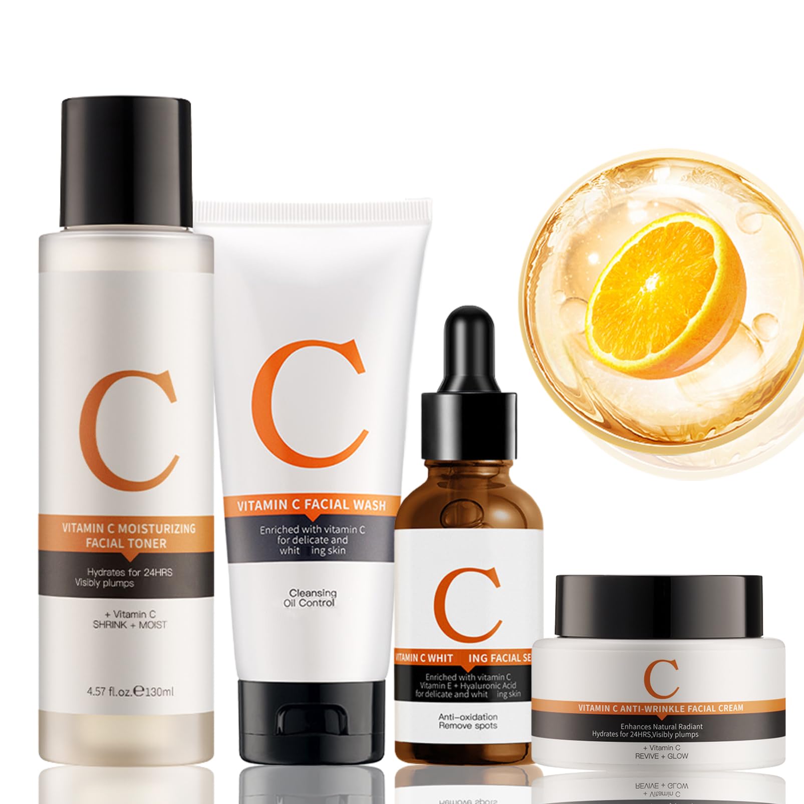 Set de cuidado de la piel con vitamina C para adolescentes y mujeres, kit de brillo de 11 piezas con limpiador facial, tónico, cre