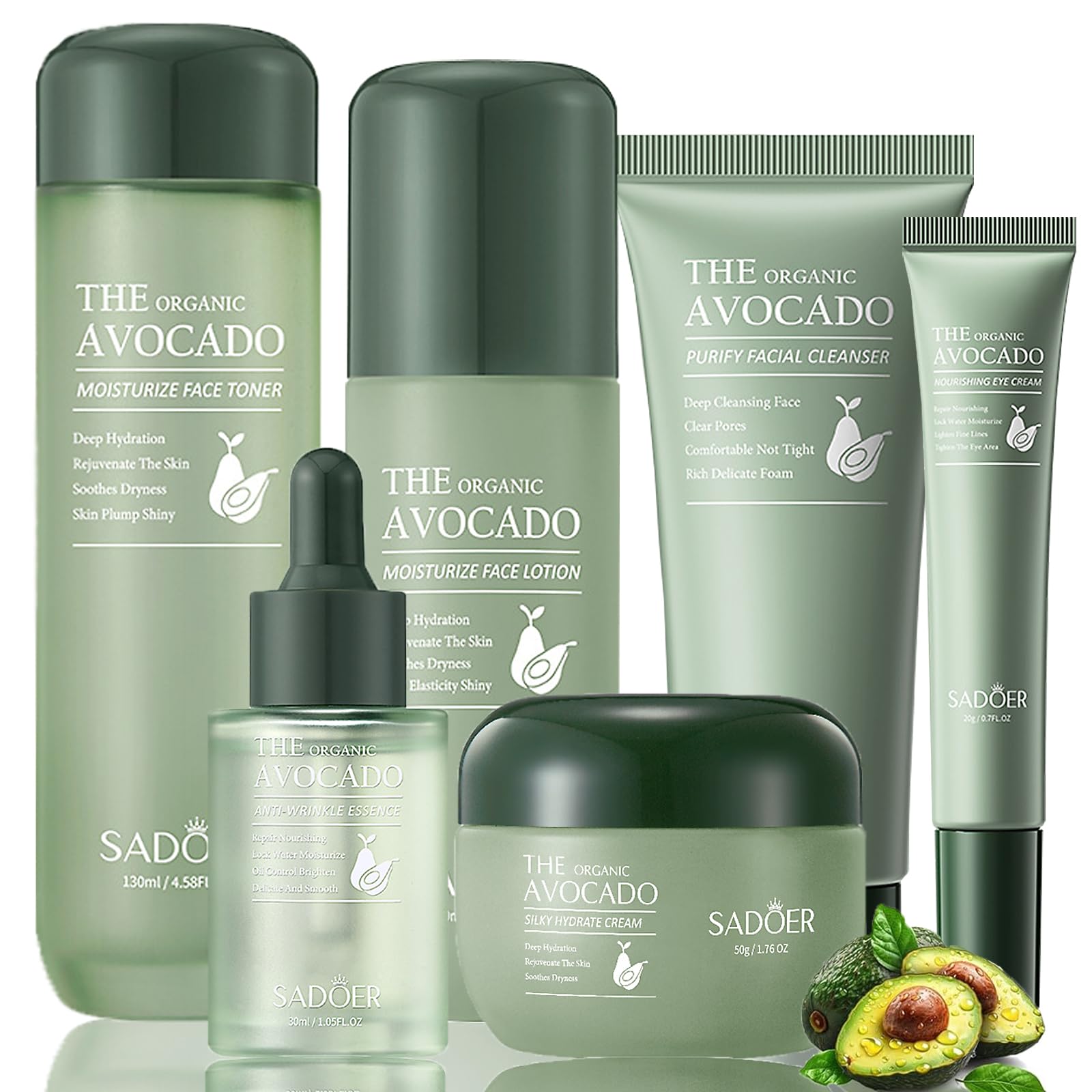 Avocado Skin Care Set for Women, 6-In-1 Skincare Gift Set With Facial Cleanser, Face Serum, Face Cream, Eye Cream, Toner, moisturi