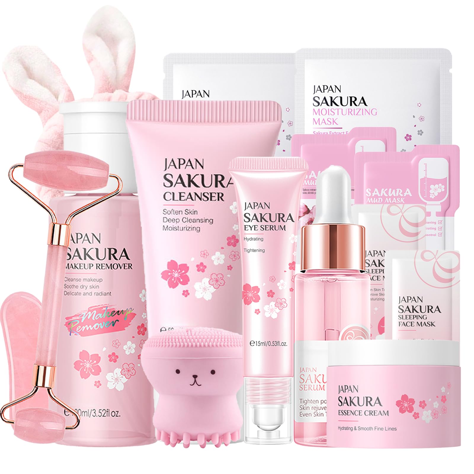 JAPAN Sakura Beauty Set de regalo para el cuidado de la piel para niñas adolescentes – limpiador, tónico, loción, suero, crema de