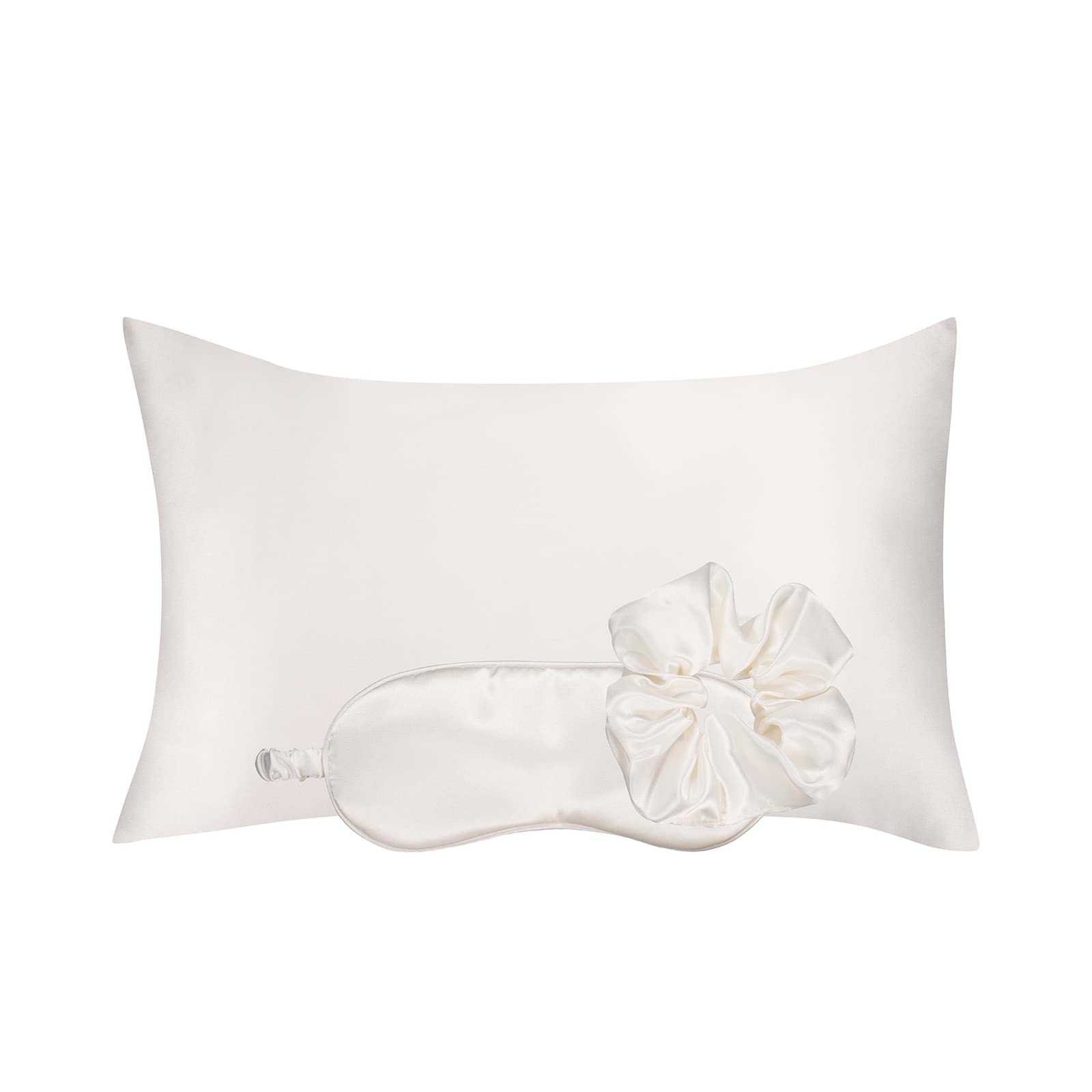 Juego de dormir de seda vegana, funda de almohada sedosa con coletero grande y máscara de ojos para cabello y piel, kit de rutina