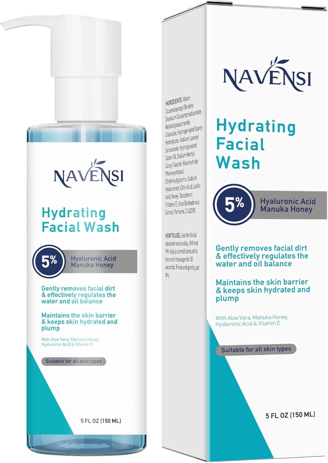 Lavado facial hidratante | Ácido hialurónico, aloe vera, vitamina E y miel de manuka | Limpiador facial hidratante profundo y refr