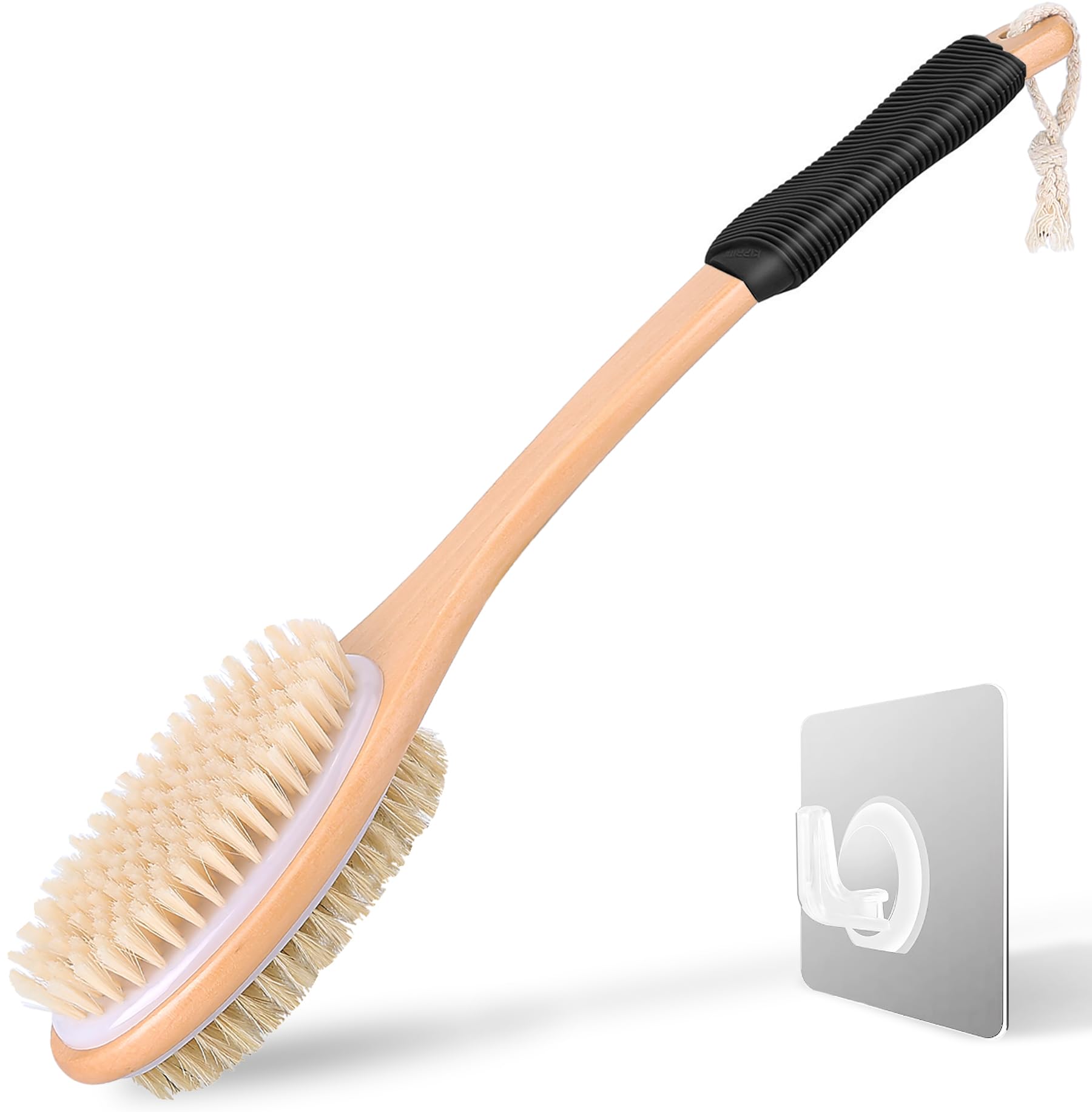 Cepillo de ducha antideslizante para ducha, mango largo con cerdas rígidas y suaves, exfoliante corporal para baño o cepillo seco