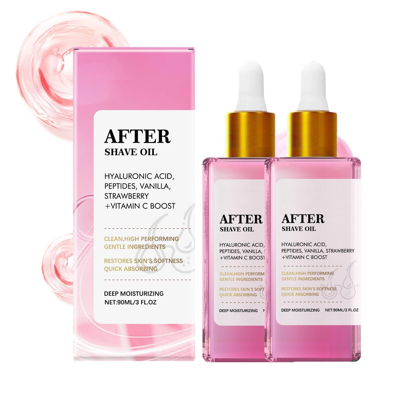 2 aceites perfumados de fresa, doble acción para afeitado y depilación, fórmula de absorción rápida no pegajosa