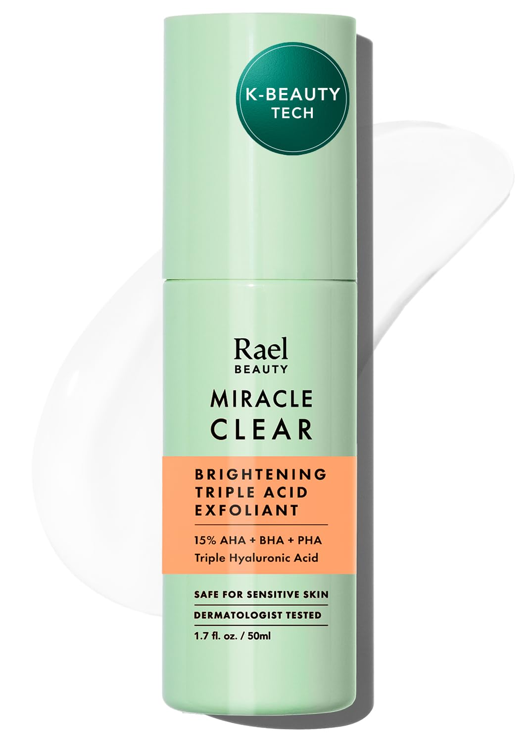 Rael Miracle Clear Triple Exfoliant Gel Serum – Exfoliante facial, suero glicólico, ácido hialurónico, 15% AHA, BHA, PHA, hidratac