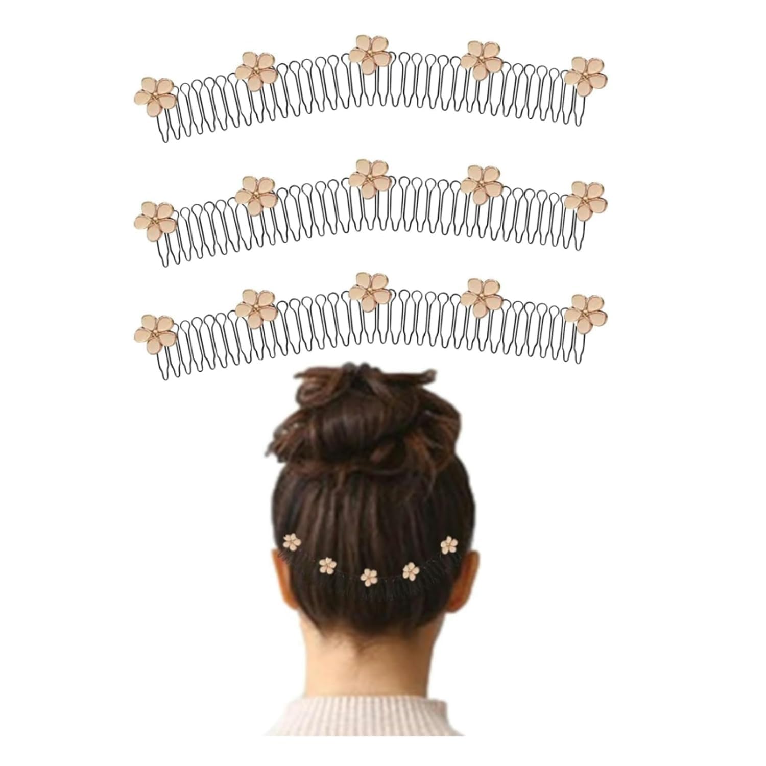 3 pinzas para el pelo de flores invisibles estirables, peine fijador de acabado de cabello en forma de U, horquilla de pelo estira