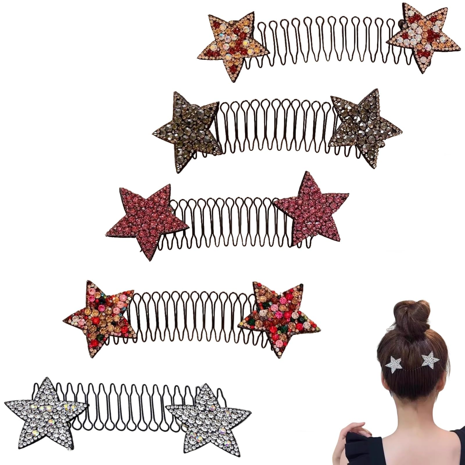 5 pinzas invisibles para el cabello, con diamantes de imitación, estirables, con forma de U, para mujeres y niñas