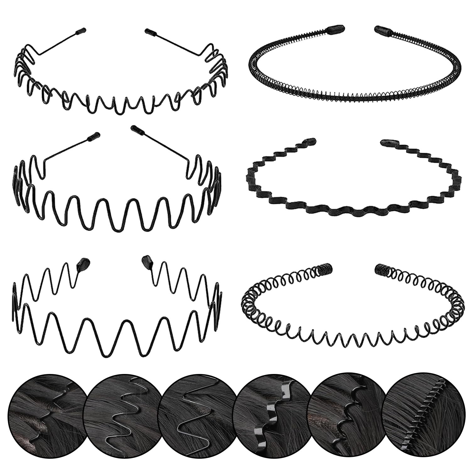 Diademas de metal para hombre, unisex, color negro, onduladas y lisas para mujer, bandas elásticas antideslizantes para el cabello
