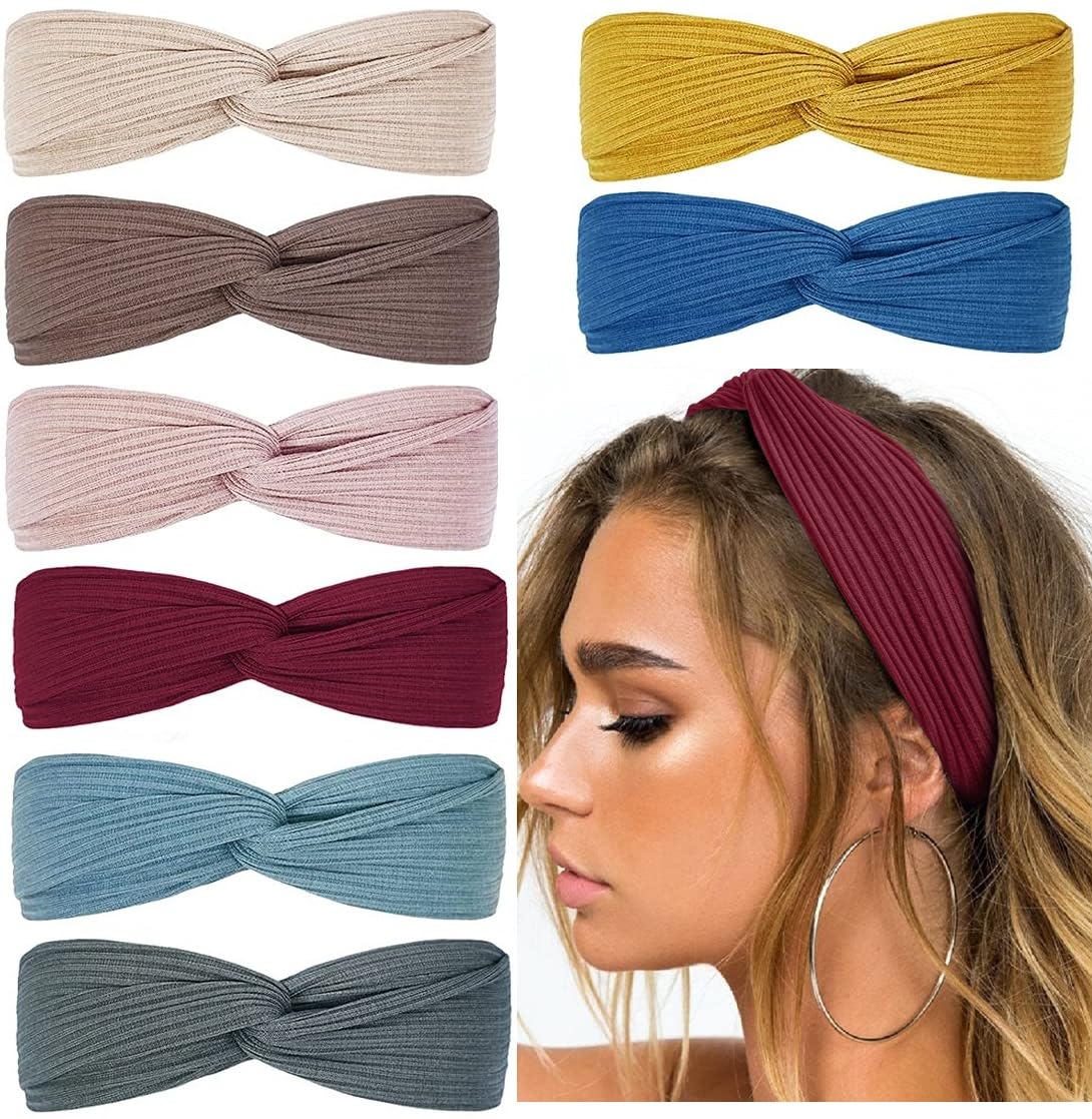 Huachi Diademas para mujer con nudos torcidos, bandas elásticas bohemias para el cabello, antideslizantes, para niñas, turbante cr