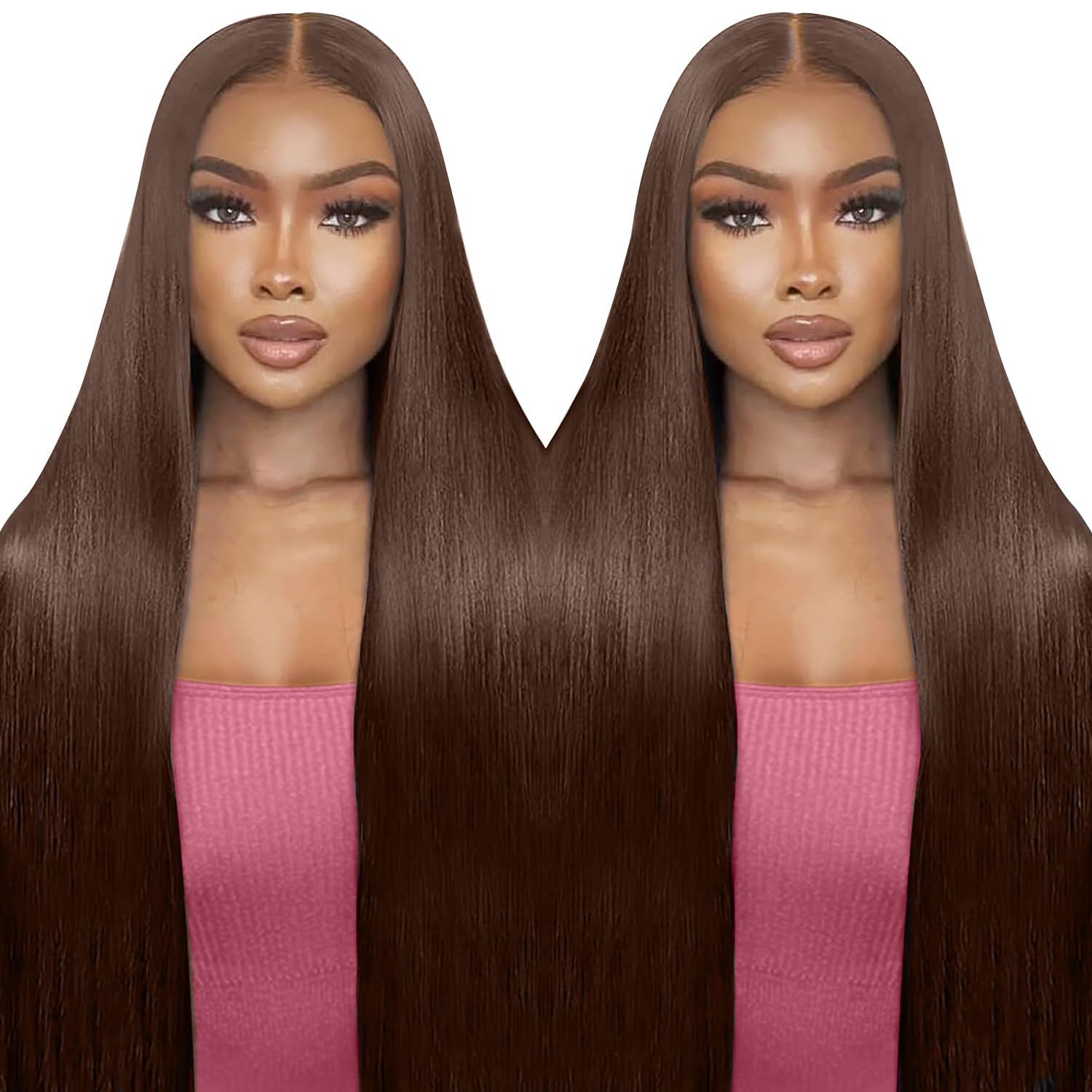 XZZ Pelucas de cabello humano marrón Wear and Go sin pegamento, precortadas, densidad del 220%, 9 x 6, color marrón chocolate, pel