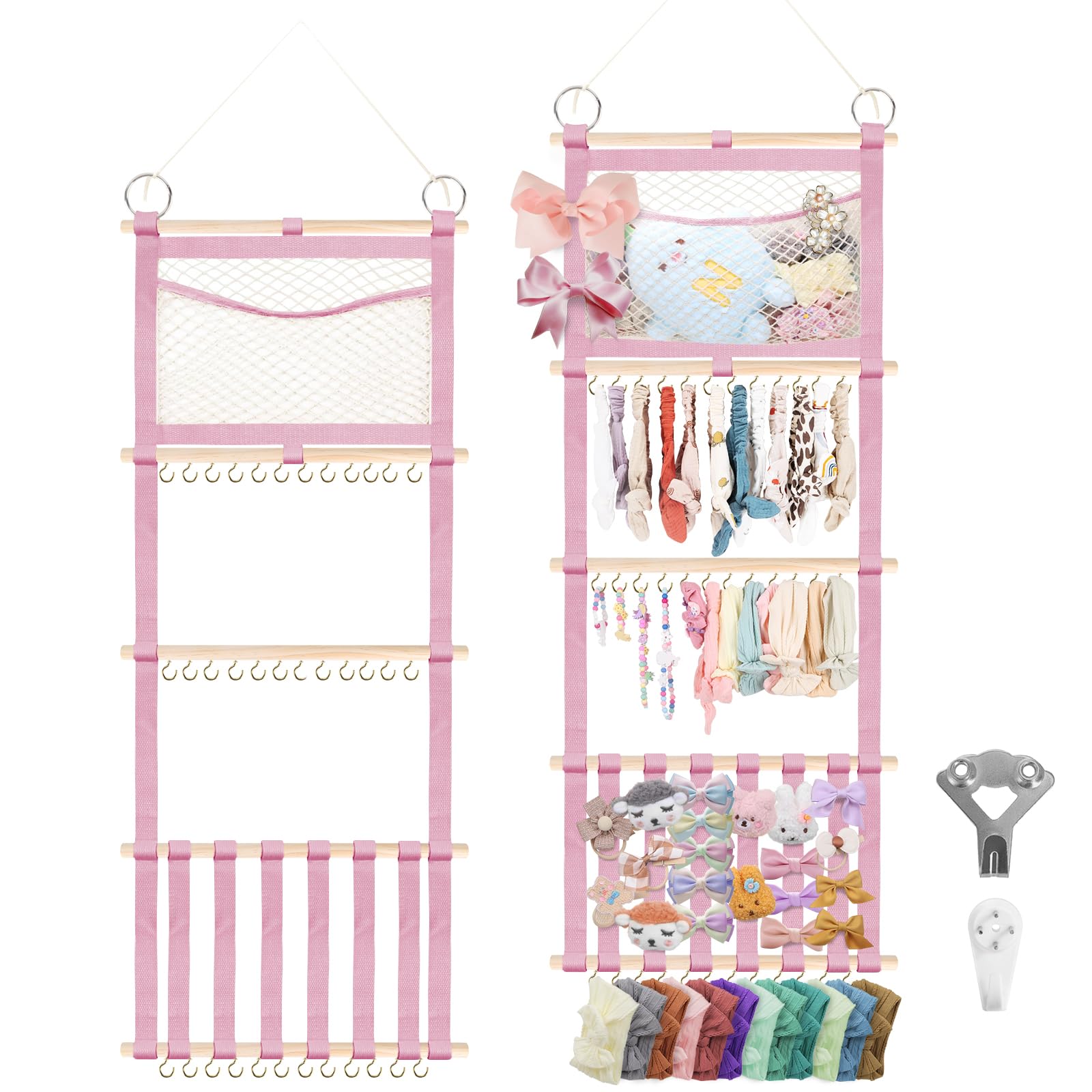 Munzong Soporte para diadema de 52 x 17 pulgadas, organizador de clip de lazo para el cabello rosa para niñas y bebés, estante de