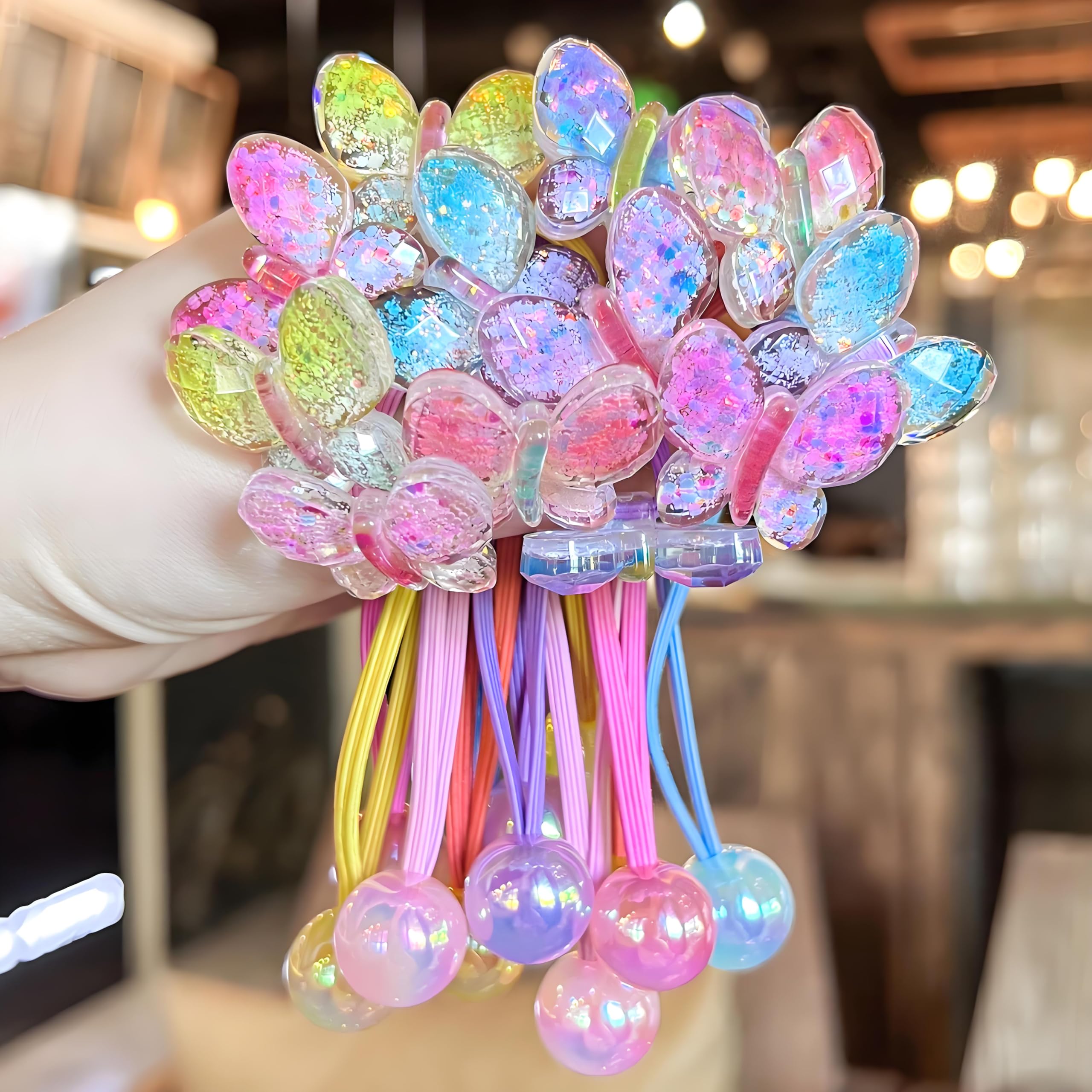 12 lazos para el cabello con dijes de bola para niñas pequeñas, banda de goma de cuentas de camelia de colores, lazos para el cabe