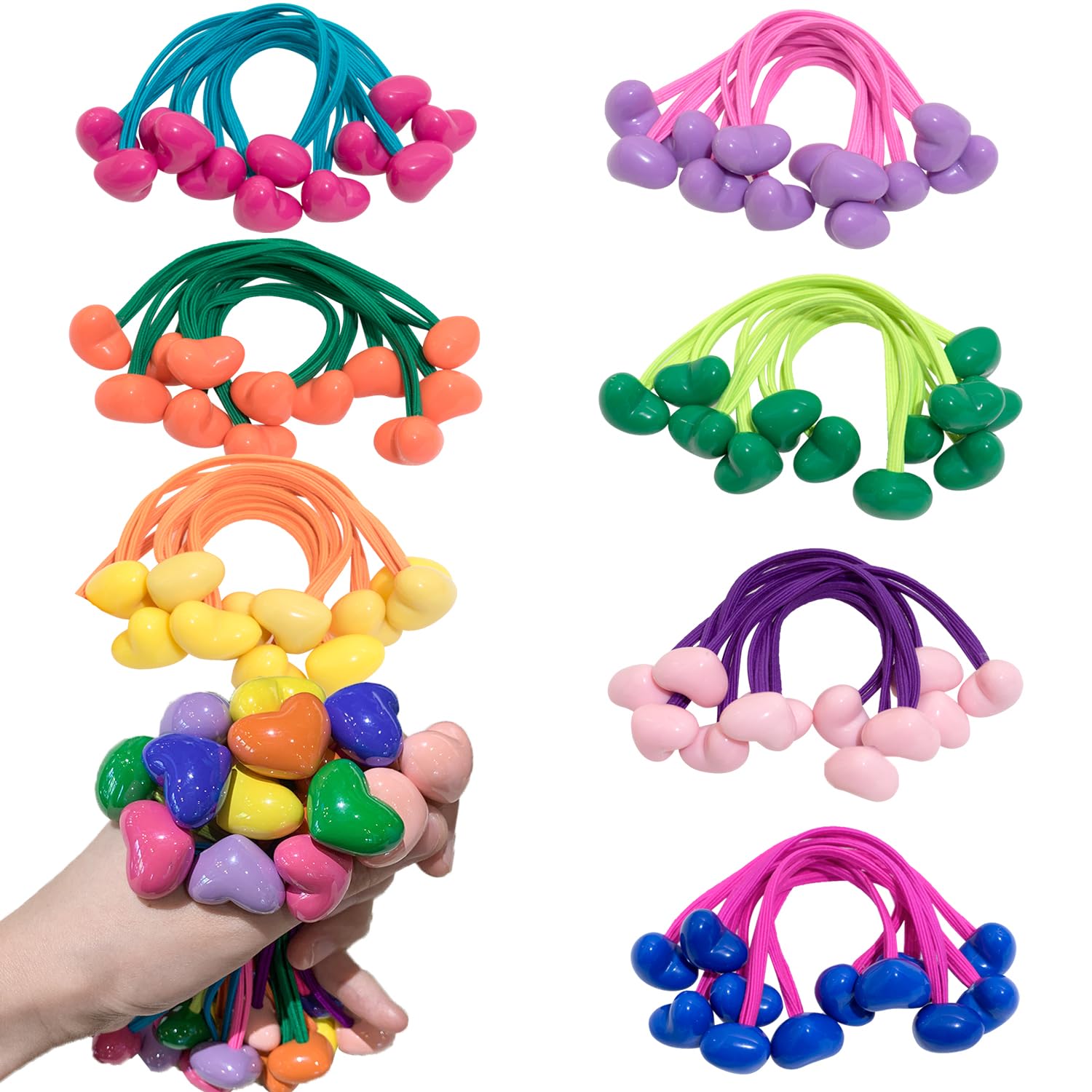 42 ligas para el cabello con forma de bola de corazón, bola de abalorios, soportes para cola de caballo de burbujas, coloridos, tr