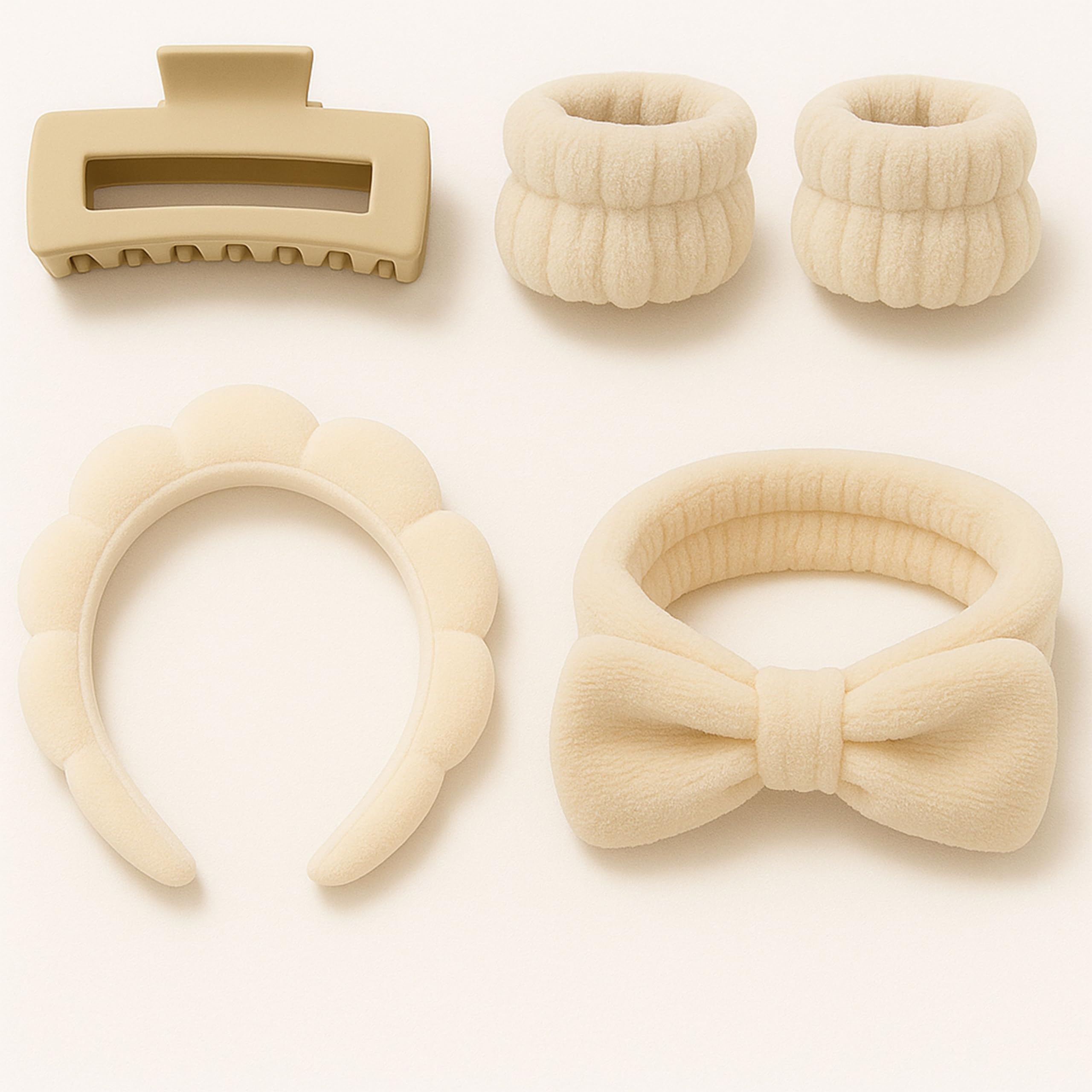 Luckybear Diadema de spa para lavar la cara, diadema de maquillaje de terciopelo con pulseras de lavado de cara, color piel