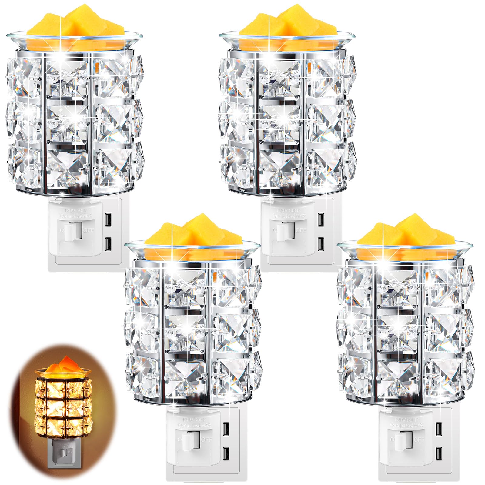Calentador de cera de pared, 4 unidades, calentador de fragancia de cristal, decorativo enchufable, para cera perfumada, enchufe e