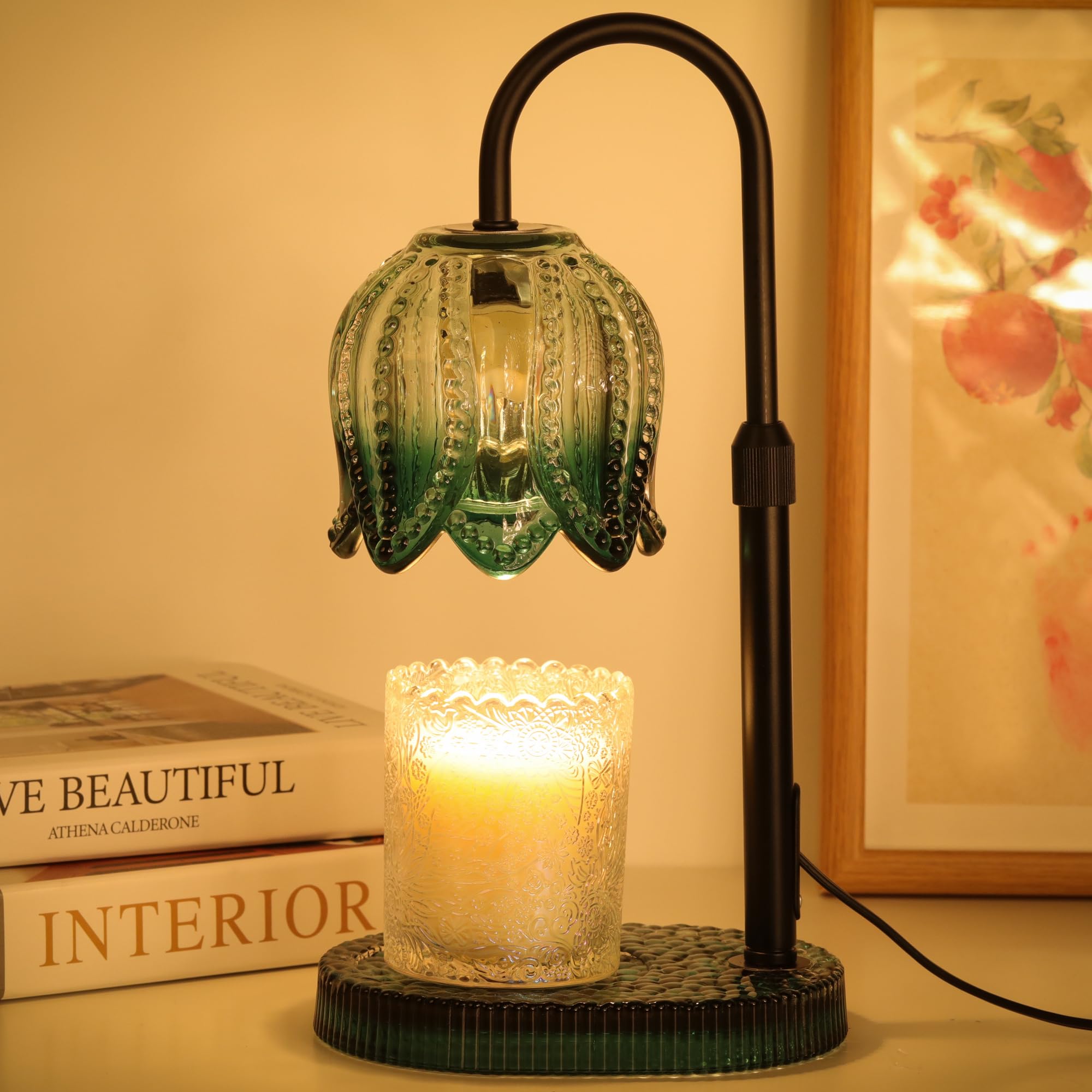 Tulip – Lámpara calentadora de velas, calentador de cera vintage con temporizador, regulador de intensidad y altura ajustable para