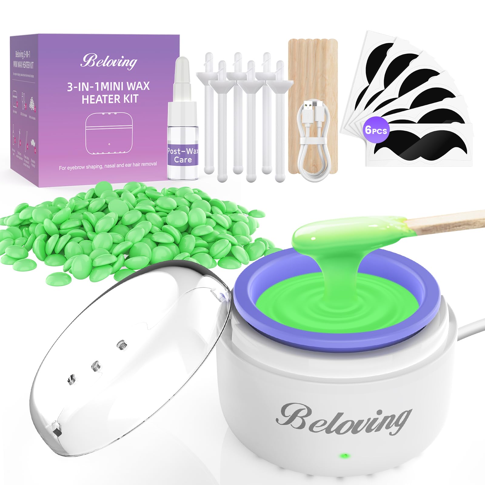 Kit de cera para el pelo de la nariz, mini calentador de cera para depilación de cejas y oídos, kit de máquina de encerado portáti