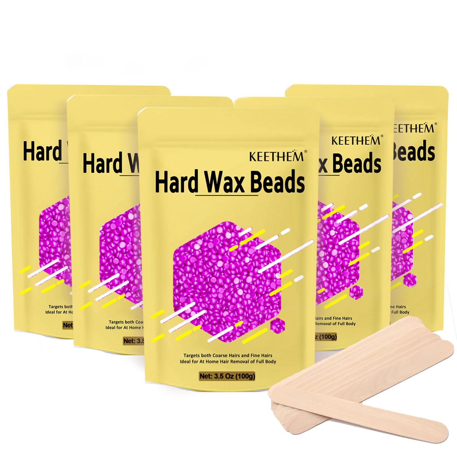 Cuentas de cera para depilación – 5 cuentas de cera de 17.6 onzas en casa para mujeres sensibles con 20 palos, bikini brasileño