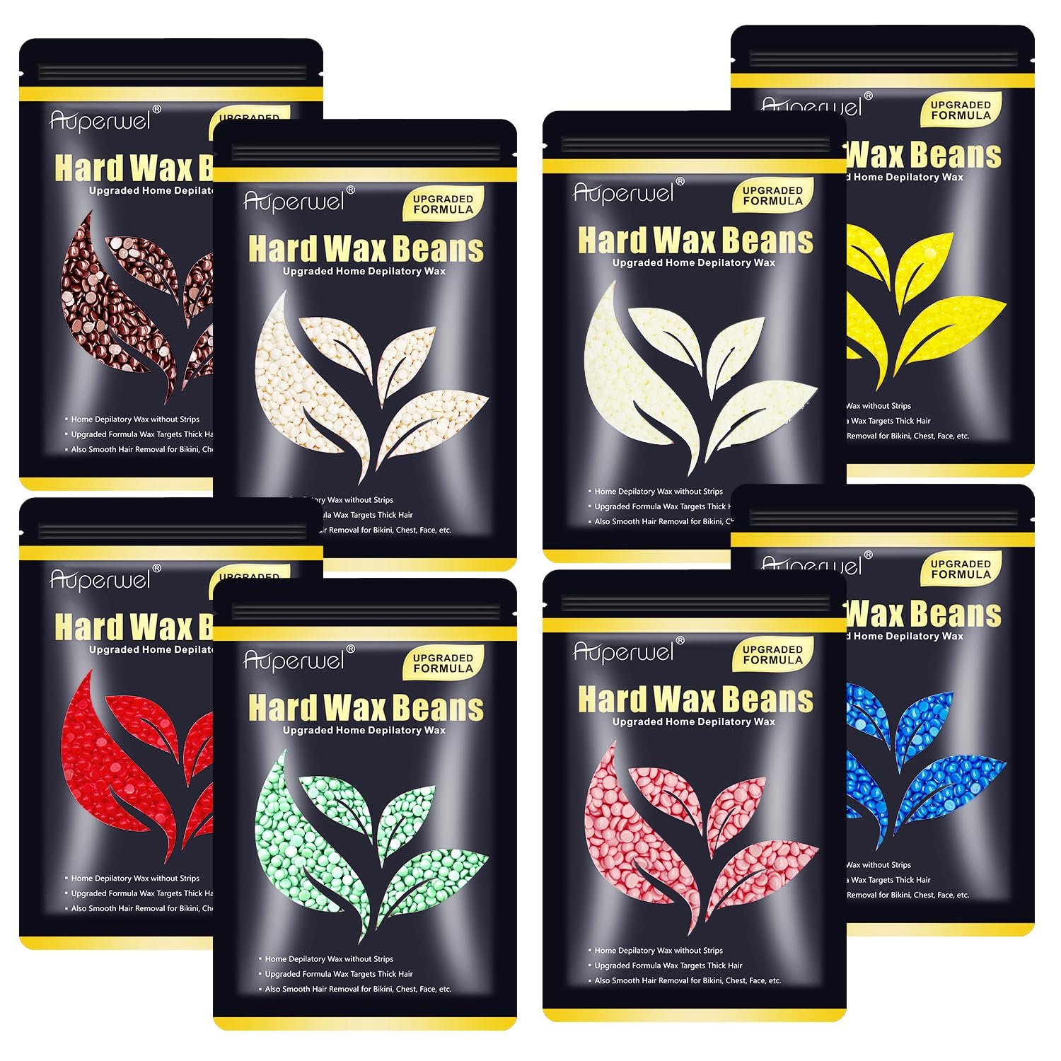 Granos de cera dura sin dolor para depilación, fórmula mejorada de 10.5 onzas para cara, cejas, bikini brasileño con 10 aplicadore