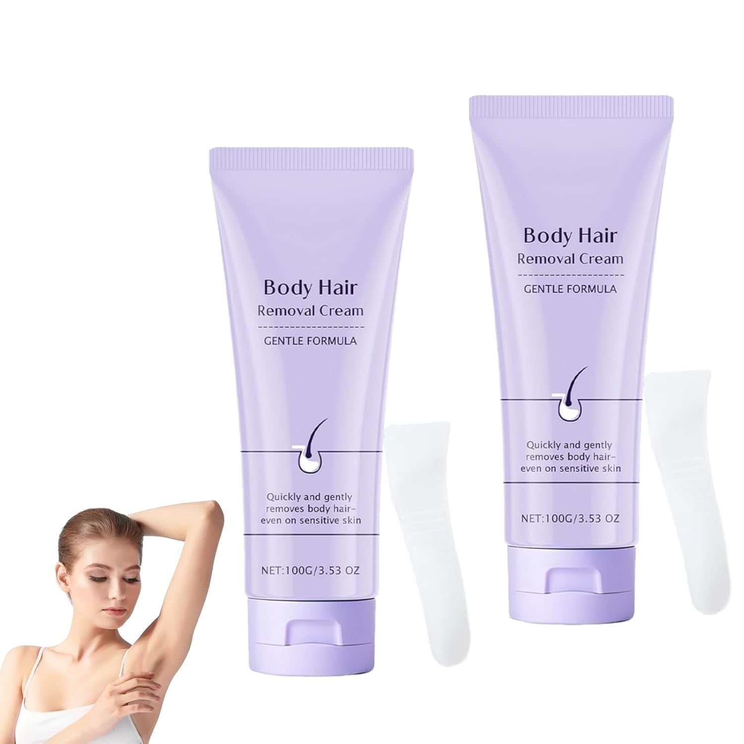 Paquete de 2 cremas depilatorias corporales para pieles sensibles, crema depilatoria sin dolor y suave con aplicador de espátula,