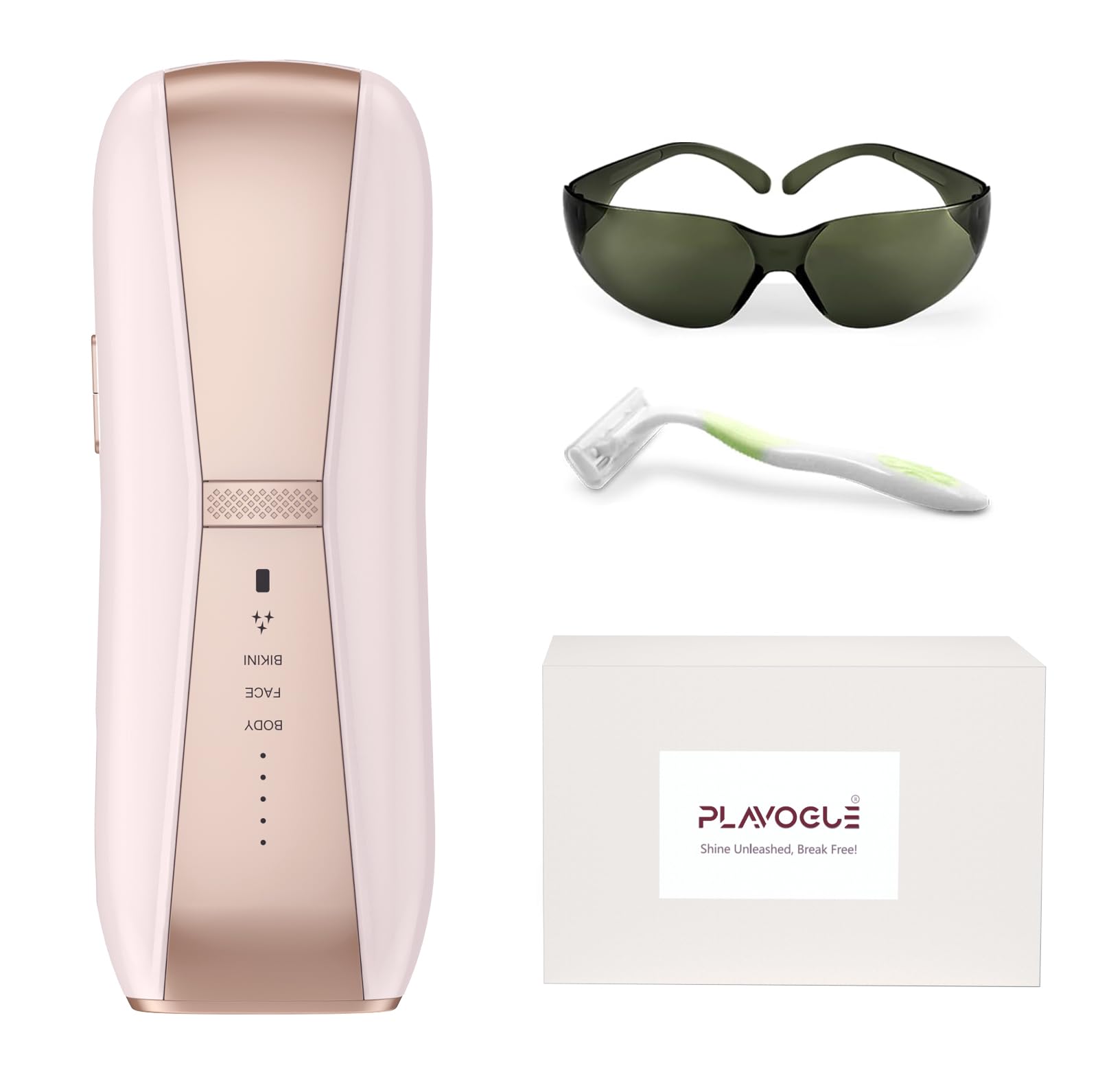 PLAVOGUE Depilación láser para hombres y mujeres, segura en casa, de larga duración, rosa, recargable, tacto de enfriamiento de hi