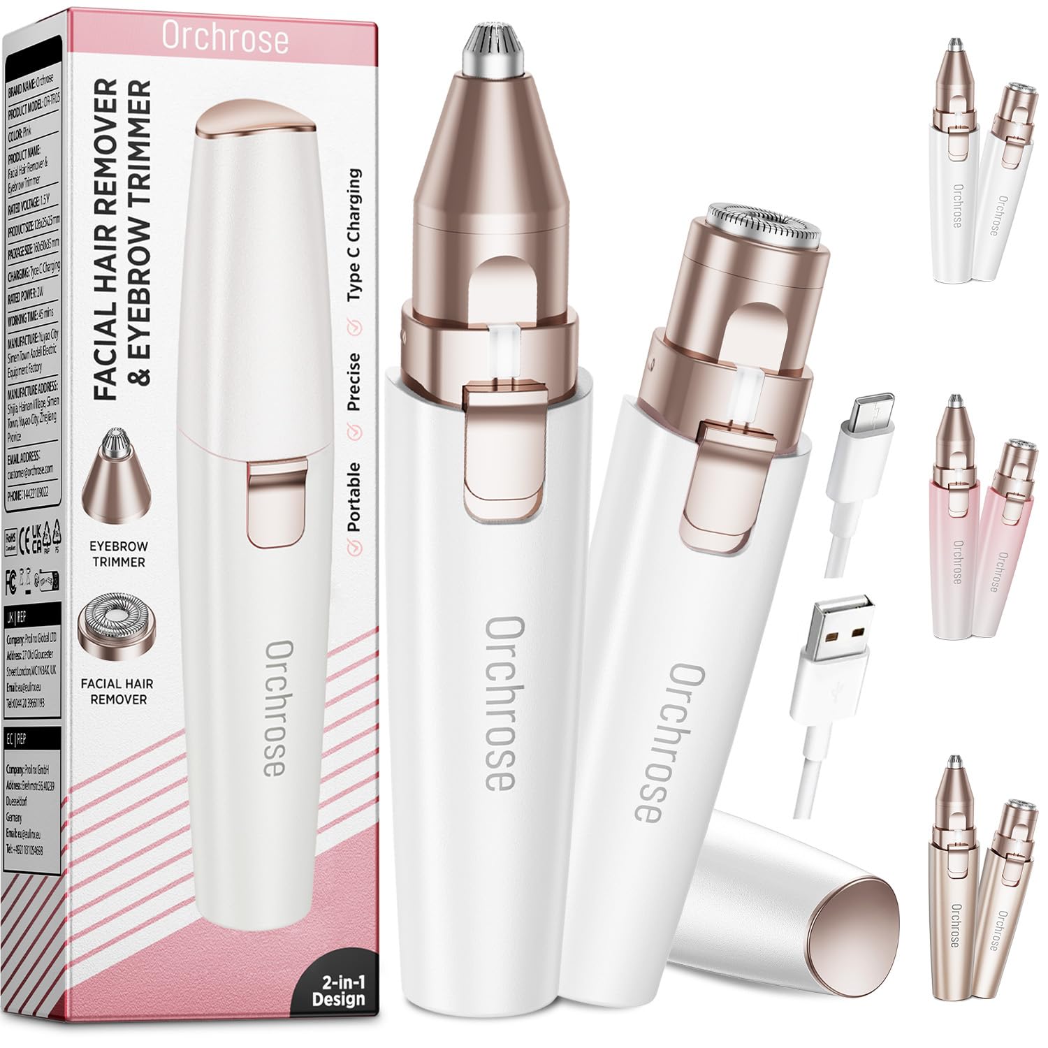 Removedor de vello facial recargable para mujeres: dispositivo 2 en 1 para dar forma a las cejas y eliminar la pelusa facial de me