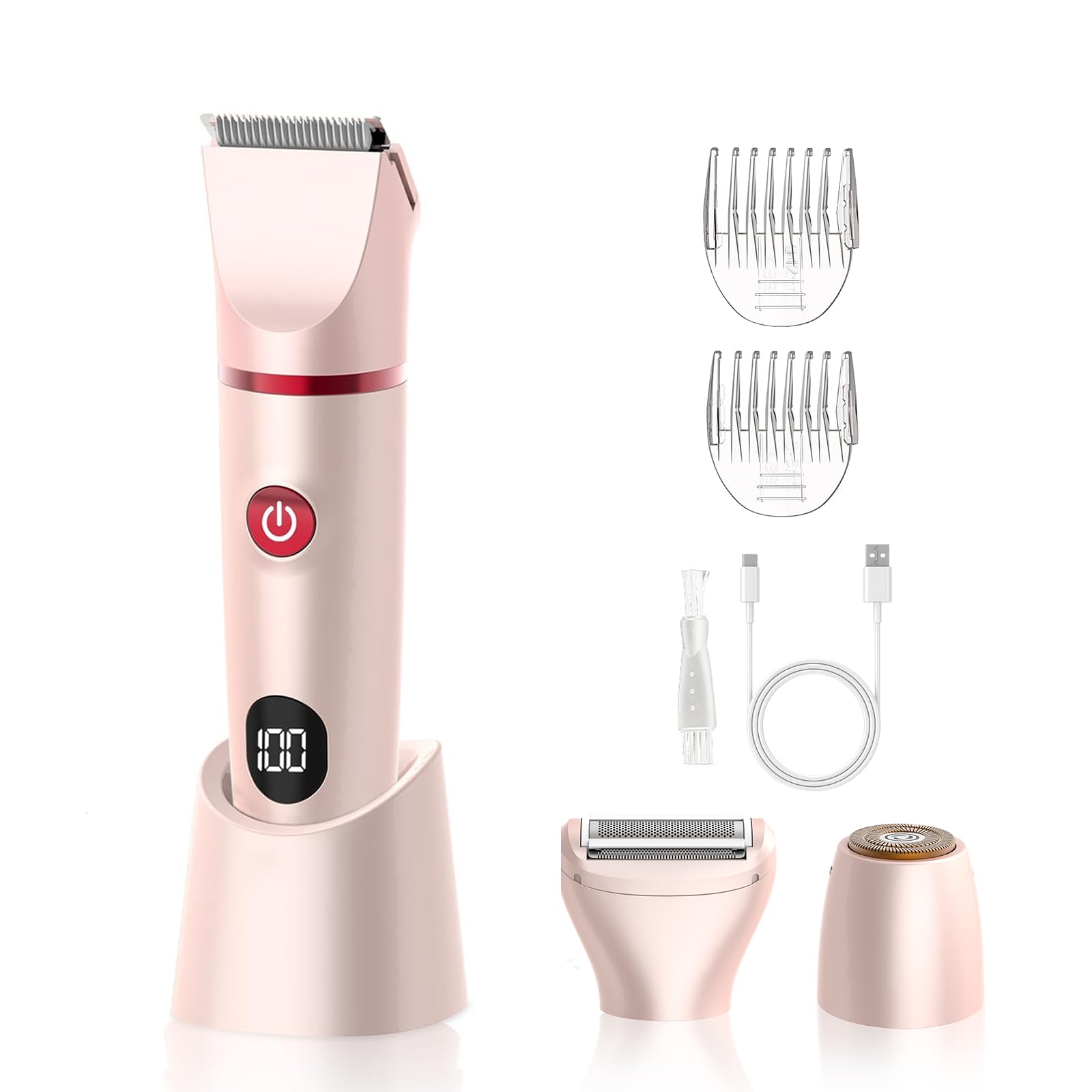 Recortadora de bikini 3 en 1 para mujer, afeitadora eléctrica para cabello público, recortadora de vello corporal recargable, kit