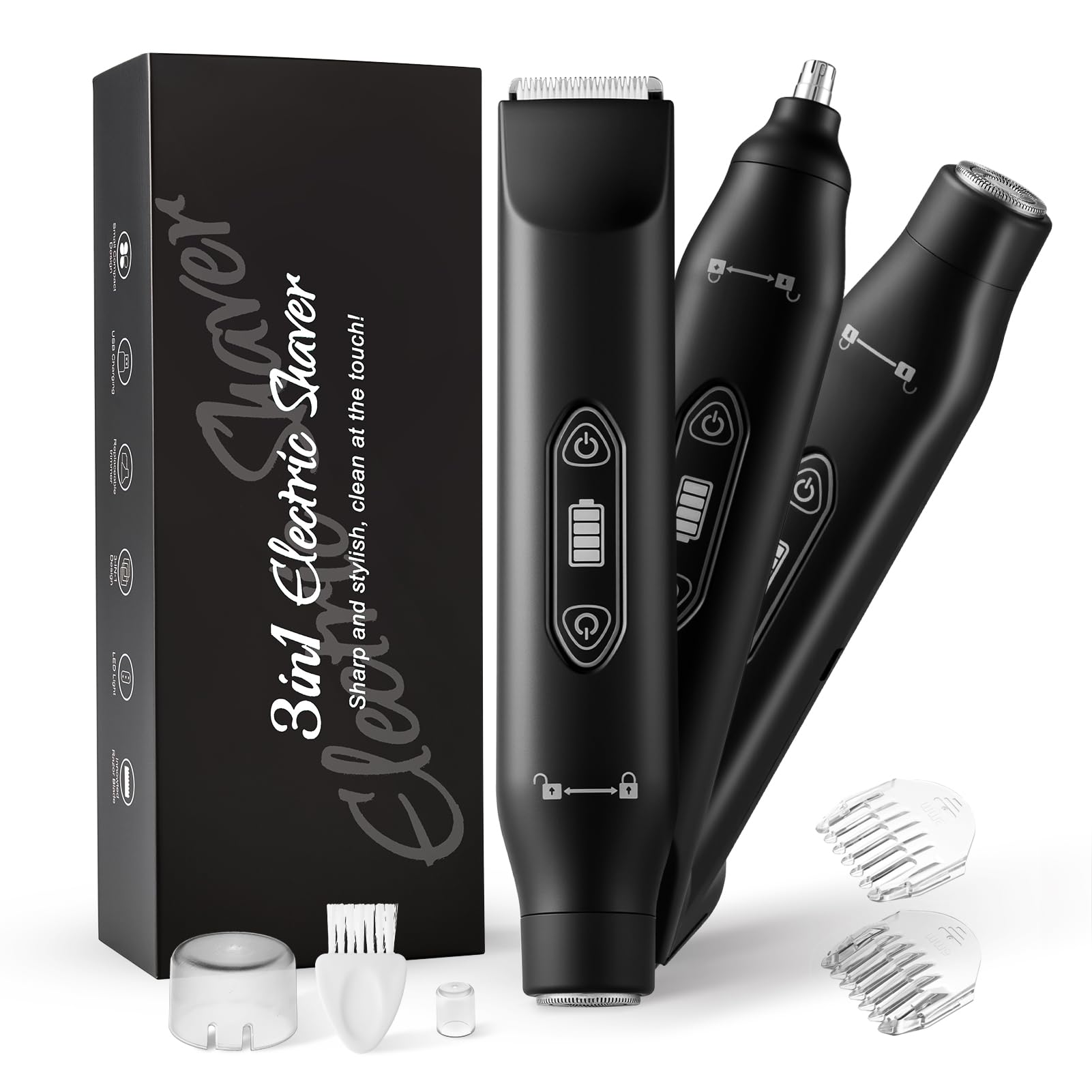 Maquinillas de afeitar eléctricas para mujer, kit de depilación corporal 3 en 1 para cara, púbic, brazo, pierna, axila, recortador