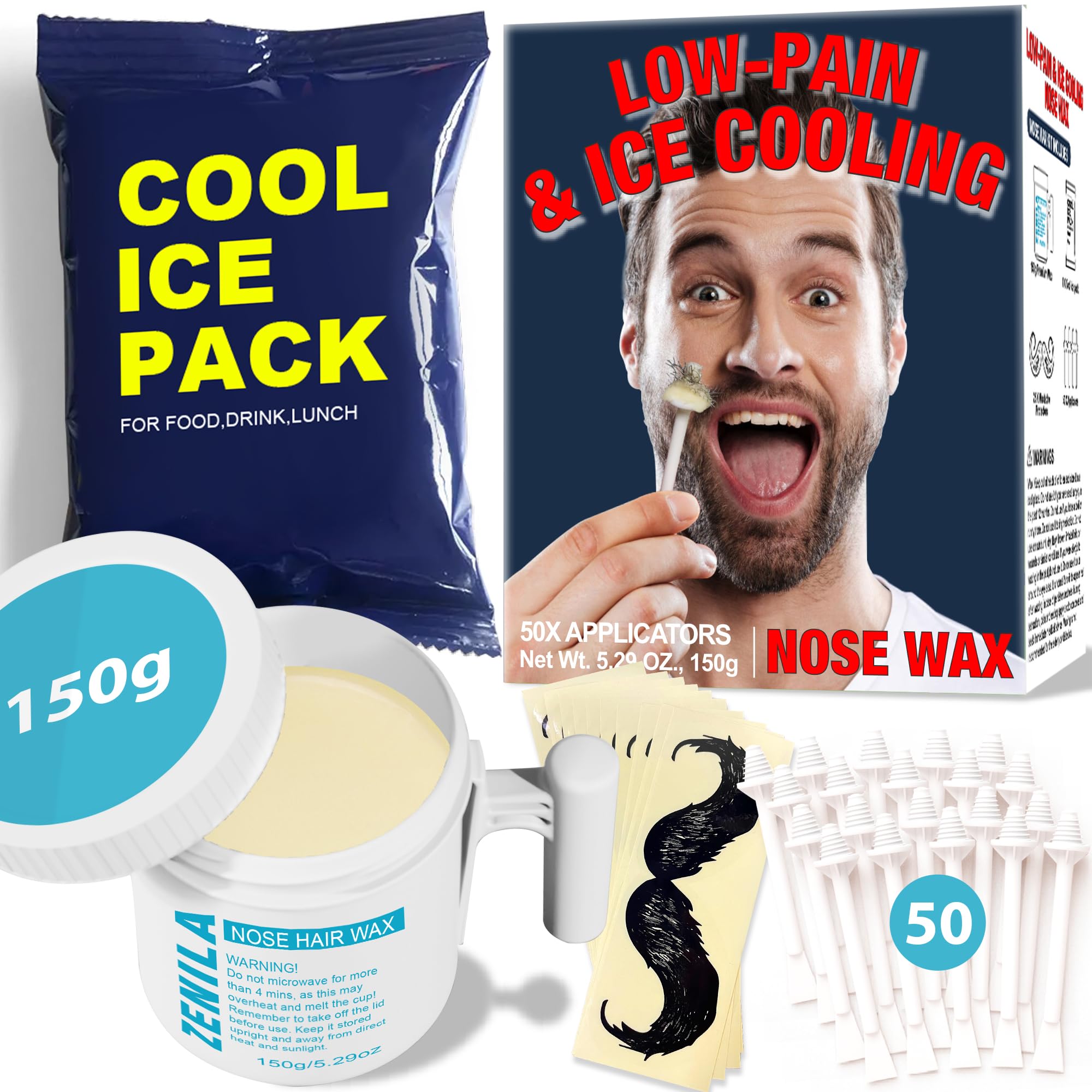 Kit de cera para el cabello de nariz sin dolor con bolsa de hielo | 5.29 oz de cera, 50 aplicadores | Depilación rápida de nariz y