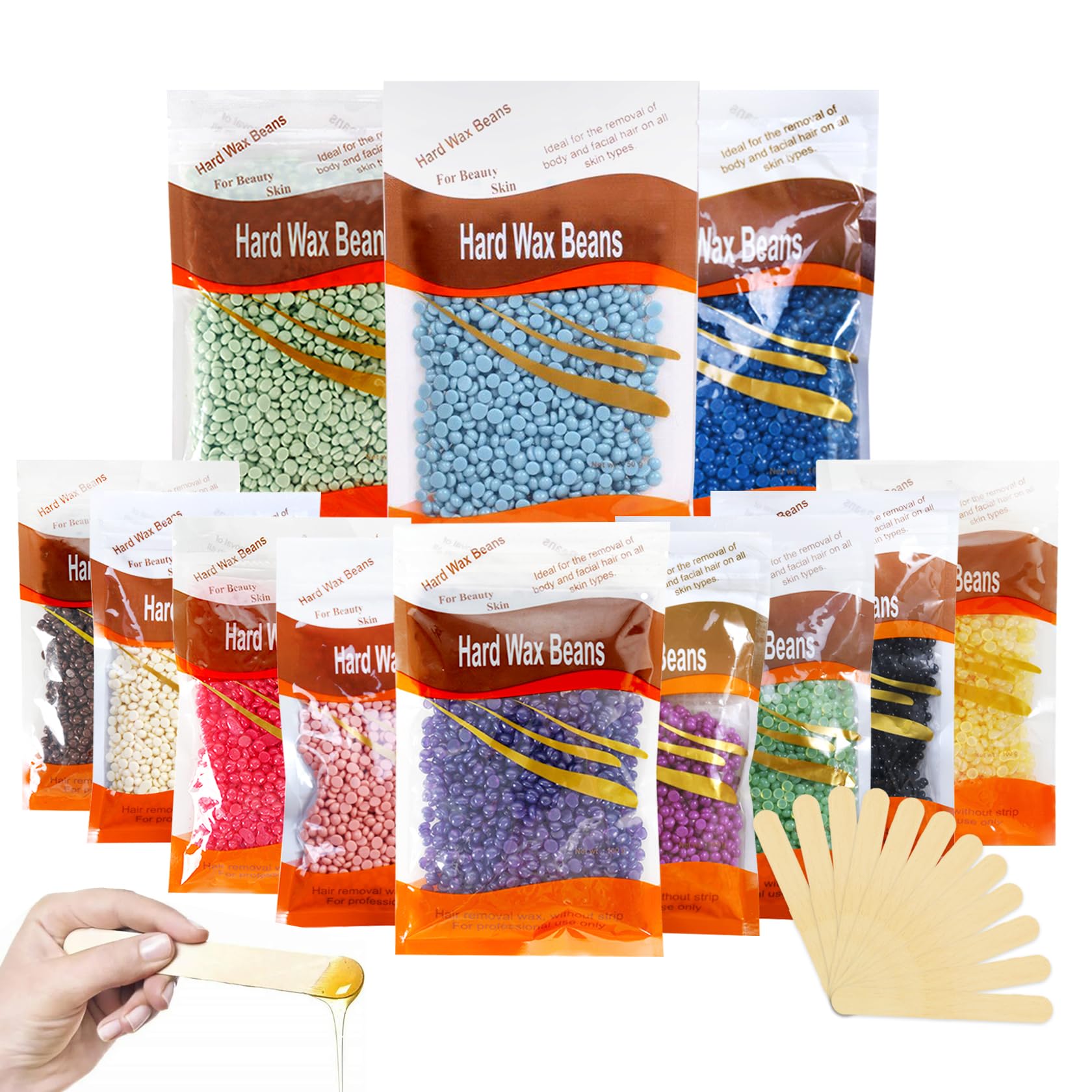 12 cuentas de cera dura para depilación, cuentas de cera para depilación facial y cuerpo, cuentas de cera en casa con palos, kit d