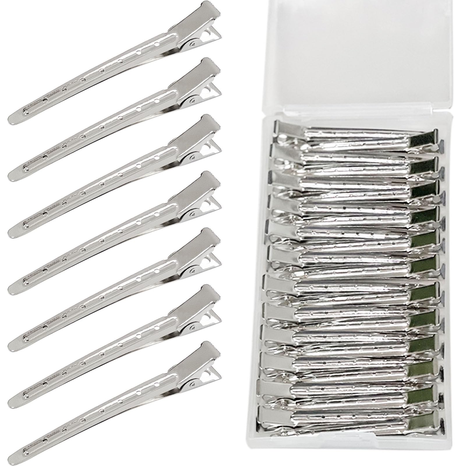 RENEWED – Pinzas de metal plateado con diseño de pato: 24 pinzas largas para seccionamiento y rizos para mujeres con estuche
