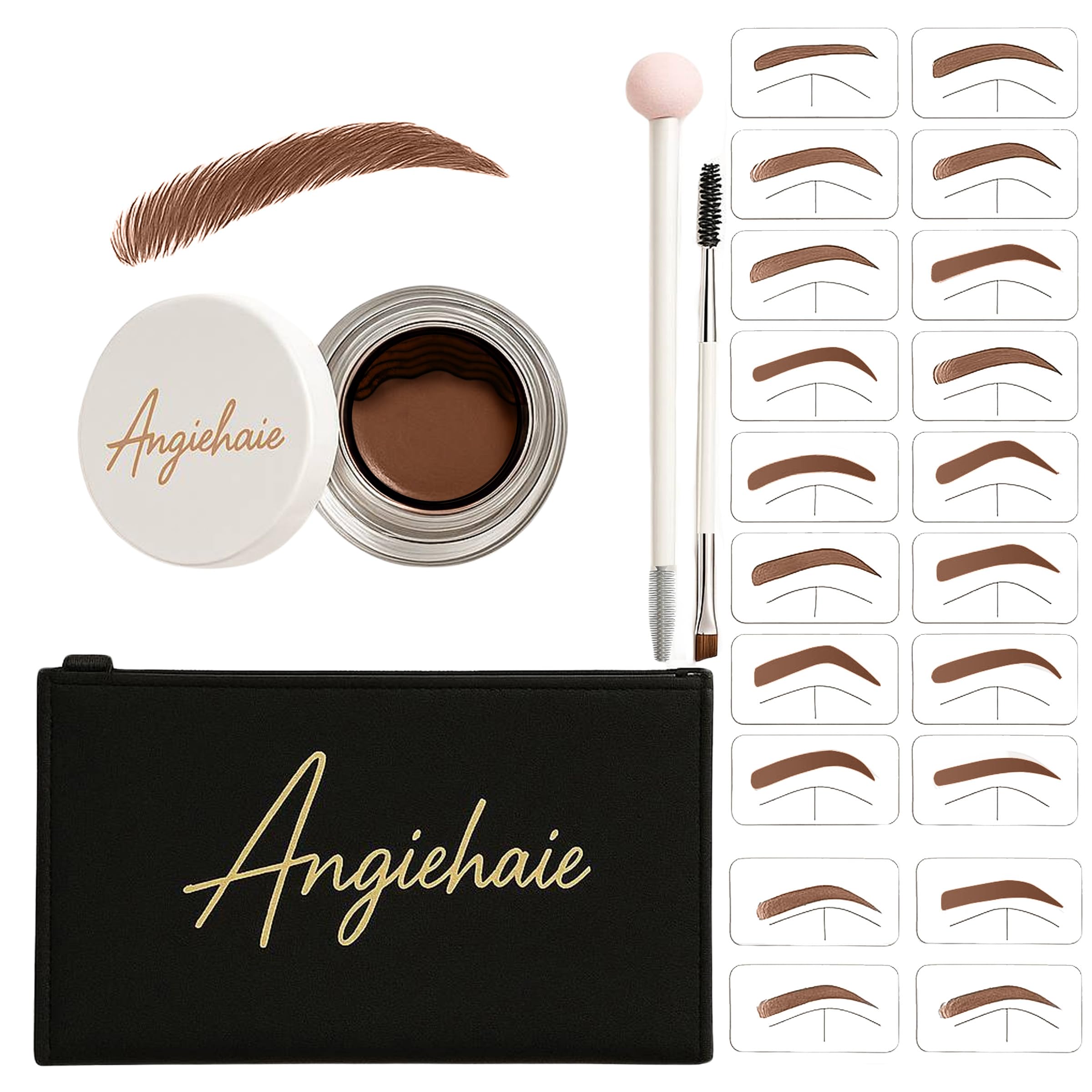 Kit de plantillas de sellos para cejas, polvo de cejas con cepillo de larga duración e impermeable, kit de moldeo de cejas con 24